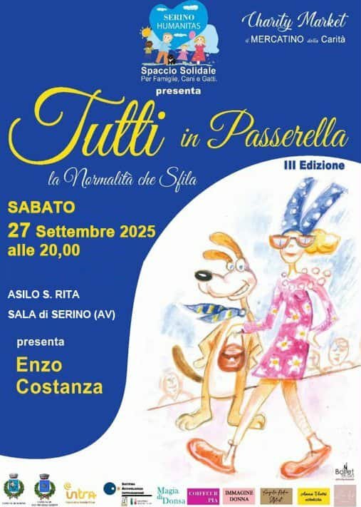 Sarà lo storico asilo delle Suore a Sala di Serino ad accogliere il 27 settembre, alle 20, “Tutti in passerella” di Serino Humanitas. Una sfilata unica nel suo genere, alla sua terza edizione, capace di riunire anziani, bambini, ragazzi di colore, diversamente abili, cani e gatti, nessuno escluso. Una sfilata che rovescia i canoni di bellezza che caratterizzano il nostro immaginario raccontando i mille volti della bellezza. E’ Laura Rocco di Serino HUmanitas a spiegare come “Vuole essere un omaggio alla bellezza interiore nel segno di tre tematiche, gran galà a teatro, un tè con la regina e un’uscita in discoteca. Gli abiti saranno del Charity market, il mercatino della carità, progetto nato dall’impegno dei volontari. Valore aggiunto della sfilata le creazioni delle nostre sarte. A cui si affiancherà la disponibilità offerta da parrucchieri ed estetiste del luogo. Vedremo una sfilata ironica e giocosa con cappelli e borse giganti e accessori tutti da scoprire”. Presenta Enzo Costanza.