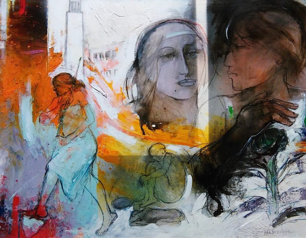 Riconducibile a un neofigurativismo di carattere sociale e umanistico, la ricerca di Mastrantoni mette al centro la fragilità dell’uomo e le contraddizioni del presente. Le sue tele attraversano paesaggi urbani, architetture, folle e figure marginali che diventano emblema di solitudini, disagi e attese. Mendicanti, migranti e spazi sospesi non sono semplici soggetti, ma strumenti di riflessione su una condizione umana segnata da precarietà, smarrimento e bisogno di senso.
