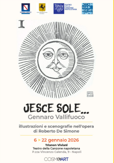 Una mostra che è un omaggio a un grande protagonista della cultura napoletana e internazionale, a un regista e musicologo come Roberto De Simone capace di lasciare una traccia profonda nel panorama culturale italiano, di innovare profondamente teatro, antropologia e musica. E “Jesce sole” dell’artista Gennaro Vallifuoco, docente all’Accademia delle Belle Arti di Napoli, figura di primo piano nel campo dell’arte e della scenografia italiana, che riunisce le opere e le illustrazioni da lui realizzate per le opere di De Simone. Una scelta che si spiega con il legame forte tra De Simone e Vallifuoco. Dopo i lavori di ristrutturazione che fecero rinascere il teatro, De Simone svolse il ruolo di consulente artistico del Trianon, allestendo, per la nuova inaugurazione, un’edizione memorabile di Eden teatro di Raffaele Viviani (2002). Successivamente volle regalare al teatro – che considerava «il migliore per l’acustica a Napoli» – quello che sarebbe stato il suo ultimo spettacolo, Trianon Opera. Tra pupi, sceneggiata e belcanto, con la regia di Davide Iodice, prodotto dal Trianon Viviani per Rai Cultura (2021). E’ Marisa Laurito, direttore artistico del Trianon a sottolineare come abbia voluto fortemente inaugurare la stagione con il ricordo di Roberto De Simone “E’ qui che Roberto De Simone ha donato al pubblico la sua ultima opera “Trianon Opera tra pupi, sceneggiata e bel canto” di cui Vallifuoco ha curato la scenografia. Ma il maestro Vallifuoco non è soltanto uno scenografo, nè solo un pittore, un insegnante, un illustratore: è un artista nel senso più autentico del termine. E Roberto De Simone, che ha dedicato la sua vita alla riscoperta e alle valorizzazioni delle radici più profonde della cultura partenopea, lo ha riconosciuto immediatamente. Vallifuoco è un artista vero di grande umiltà, che ha collaborato con il Maestro, a partire da La Gatta Cenerentola, e in numerosi spettacoli e pubblicazioni, senza mai trascurare la propria ricerca pittorica personale, che gli ha valso importanti riconoscimenti nazionali e internazionali. Non poteva non essere protagonista di questa mostra, nella quale vogliamo ricordare un Maestro immenso come Roberto De Simone e il contributo straordinario che ha donato a Napoli e al mondo della musica”.