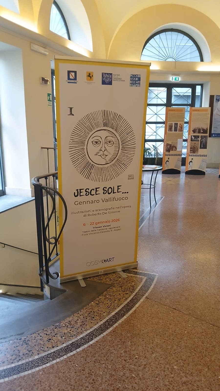Una mostra che è un omaggio a un grande protagonista della cultura napoletana e internazionale, a un regista e musicologo come Roberto De Simone capace di lasciare una traccia profonda nel panorama culturale italiano, di innovare profondamente teatro, antropologia e musica. E “Jesce sole” dell’artista Gennaro Vallifuoco, docente all’Accademia delle Belle Arti di Napoli, figura di primo piano nel campo dell’arte e della scenografia italiana, che riunisce le opere e le illustrazioni da lui realizzate per le opere di De Simone. Una scelta che si spiega con il legame forte tra De Simone e Vallifuoco. Dopo i lavori di ristrutturazione che fecero rinascere il teatro, De Simone svolse il ruolo di consulente artistico del Trianon, allestendo, per la nuova inaugurazione, un’edizione memorabile di Eden teatro di Raffaele Viviani (2002). Successivamente volle regalare al teatro – che considerava «il migliore per l’acustica a Napoli» – quello che sarebbe stato il suo ultimo spettacolo, Trianon Opera. Tra pupi, sceneggiata e belcanto, con la regia di Davide Iodice, prodotto dal Trianon Viviani per Rai Cultura (2021). E’ Marisa Laurito, direttore artistico del Trianon a sottolineare come abbia voluto fortemente inaugurare la stagione con il ricordo di Roberto De Simone “E’ qui che Roberto De Simone ha donato al pubblico la sua ultima opera “Trianon Opera tra pupi, sceneggiata e bel canto” di cui Vallifuoco ha curato la scenografia. Ma il maestro Vallifuoco non è soltanto uno scenografo, nè solo un pittore, un insegnante, un illustratore: è un artista nel senso più autentico del termine. E Roberto De Simone, che ha dedicato la sua vita alla riscoperta e alle valorizzazioni delle radici più profonde della cultura partenopea, lo ha riconosciuto immediatamente. Vallifuoco è un artista vero di grande umiltà, che ha collaborato con il Maestro, a partire da La Gatta Cenerentola, e in numerosi spettacoli e pubblicazioni, senza mai trascurare la propria ricerca pittorica personale, che gli ha valso importanti riconoscimenti nazionali e internazionali. Non poteva non essere protagonista di questa mostra, nella quale vogliamo ricordare un Maestro immenso come Roberto De Simone e il contributo straordinario che ha donato a Napoli e al mondo della musica”.