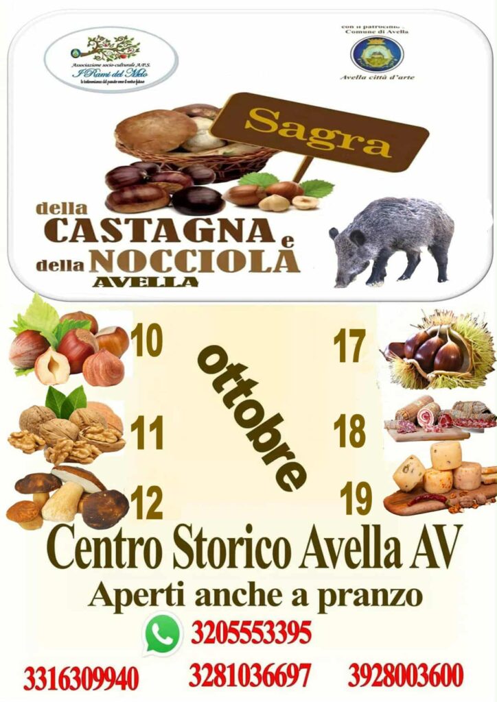Al via ad Avella la sagra della Castagna e della nocciola, alla sua dodicesima edizione. La kermesse, curata dall’associazione “I Rami del Melo”, sarà di scena venerdì 10 sabato 11 e domenica 12 ottobre ed in replica venerdì 17 sabato 18 e domenica 19 ottobre. Una sagra diventata negli anni fiore all’occhiello del territorio grazie alla qualità dei prodotti e all’accoglienza della comunità avellana. Alla degustazione di prodotti tipici locali si affiancheranno, artigianato, spettacoli musicali, visite guidate ai monumenti storici di Avella, dall’anfiteatro al castello medioevale fino ai mausolei funerari. Tante le ricette legate alla tradizione che sarà possibile gustare: linguine noci e alici, penne ai funghi porcini, penne al sugo di cinghiale, panino salsiccia e friarielli, fagiolata con cotechini, caldarroste, dolci di nocciola e castagne, noci, nocciole crude e tostate.Tra i servizi offerti baby parking, ampi parcheggi e sosta camper . La scommessa è quella di proporre un’offerta sempre migliore ai tanti visitatori presenti provenienti anche da fuori provincia.