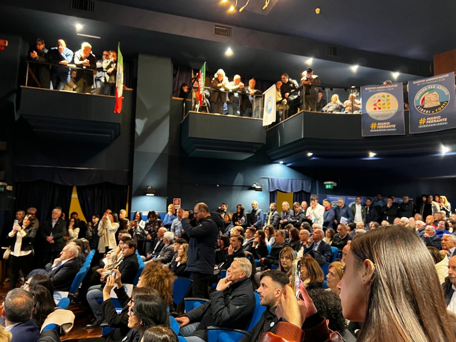 Ariano Irpino – Folla delle grandi occasioni, stasera, all’Auditorium Comunale “Lina Wertmuller” dove il centrodestra ha presentato il suo candidato sindaco, Mario Ferrante, e le cinque liste che lo affiancano. L’ex dirigente sanitario dell’Asl di Avellino, oggi in pensione, ha chiamato i candidati. Fdi, Fi e Azione, le tre liste di partito, più le due civiche: Liberi e Forti-Insieme per Ariano e Patto Civico. Molti, ovviamente, i temi toccati. “La Città del Tricolle – ha detto Ferrante – ha bisogno di cambiare. E noi lavoreremo per farlo”. Infrastrutture, agricoltura, ma anche emergenza idrica, il traffico che si intasa a Cardito. ” Dovremo intervenire su due fronti: l’alleggerimento del traffico locale – ha sostenuto in proposito Ferrante – perché bisognerà avere una connessione più snella con le infrastrutture che stanno nascendo: piattaforma logistica, alta velocità e stazione Hirpinia. La questione delle infrastrutture e’, per noi e per Ariano, cruciale”. Grande attenzione, la coalizione che sorregge Mario Ferrante per le prossime elezioni amministrative del 24 e 25 maggio, la riserva ” al centro così come alle periferie – ha continuato il candidato sindaco del centrodestra, i cui “maggiorenti” erano presenti in sala -. Perché Ariano deve essere una sola, grande, città. E deve tornare ad unirsi”. A questo proposito ha sottilineato che istituira’ un apposito assessorato alle periferie. Quindi la questione “ospedale Frangipane”. “La mia coalizione – così Ferrante, emozionato perché si toccava un argomento “per il quale ho dato tutta la mia vita” – in merito a questo sarà sempre sul pezzo”. “Ci sarà – ha proseguito il candidato sindaco – una costante interlocuzione con l’Asl, la Regione Campania e le istituzioni competenti”. Poi il rilancio delle attività produttive e del commercio. “Stamattina ho girato tra le bancarelle del mercato settimanale e ascoltato chi ci lavora, con grande passione e dedizione. Rilanceremo i mercati cittadini, saremo a fianco dei negozi di vicinato e ai produttori locali. Ariano, quindi, dovrà essere un posto attrattivo con la “cura di eventi e di cultura”. Una parte l’ha riservata al “turismo religioso”: Ferrante che, oggi, è stato al Santuario di Valleluogo, luogo simbolo della religiosità di questa comunità, lo ha infatti ricordato. Non ha dimenticato l’agricoltura, per la quale “Ariano ha una antica vocazione”. Le lungaggini burocratiche, secondo l’ex direttore sanitario, vanno eliminate con “i sevizi comunali più vicini ai cittadini”.