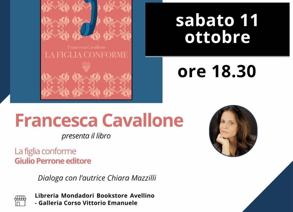 Un’idea nata anni fa, cresciuta gradualmente, tra spinte in avanti e attese, poi l’accelerata, quando la narrazione trova la sua strada e si muove agile, pur negli intrecci complessi che agitano una e tante vicende familiari: potrebbe essere questo un accenno di prologo del primo lavoro letterario di Francesca Cavallone, autrice del romanzo “La figlia conforme”, Giulio Perrone editore, e che sarà presentato sabato 11 ottobre alle ore 18.30 presso la Libreria Mondadori Bookstore di Avellino, al corso Vittorio Emanuele. Scrittura e lettura, le passioni di sempre dell’autrice, che si è specializzata in materie giuridiche ma che non ha mai…