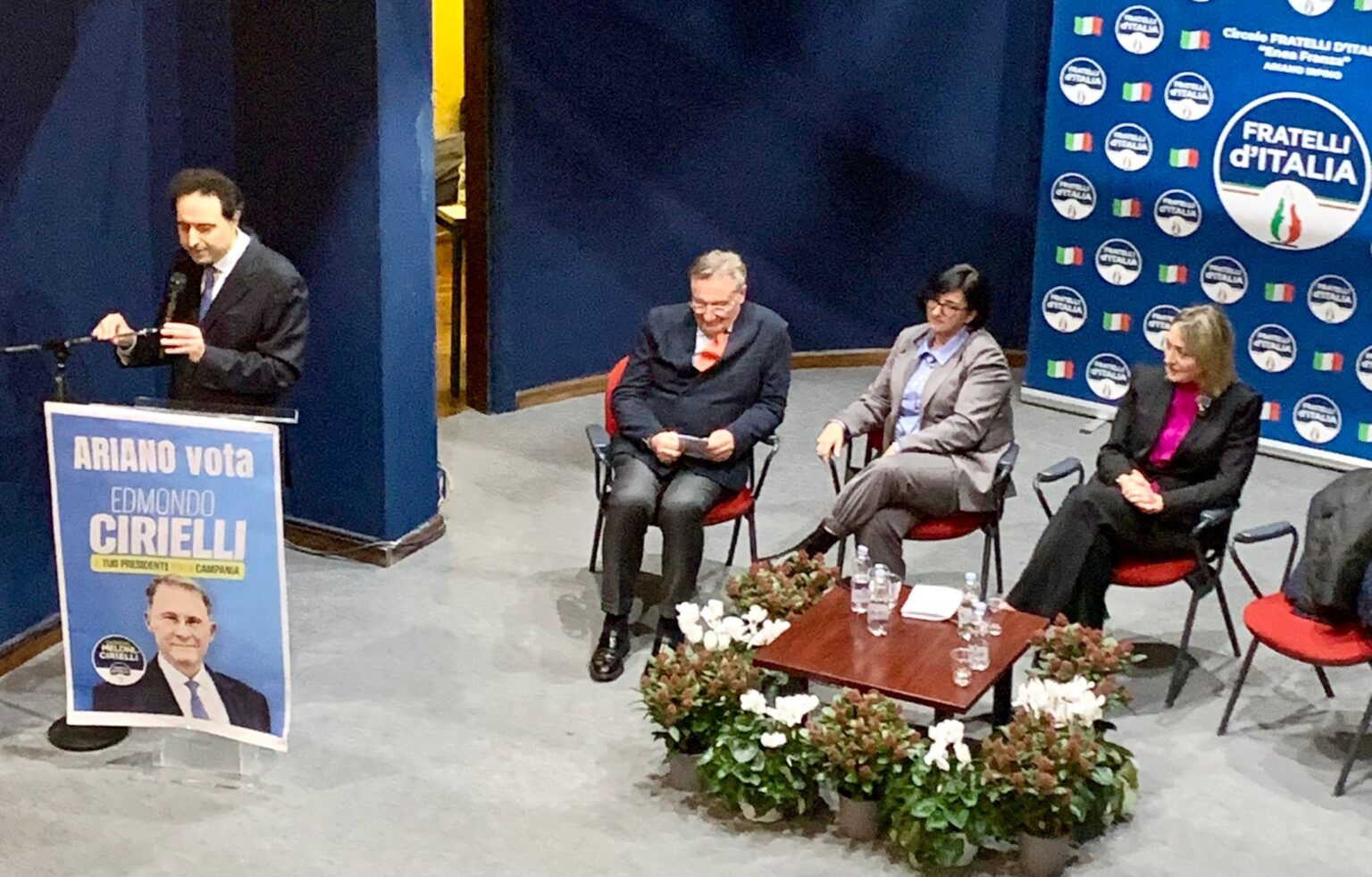 di Egidio Leonardo Caruso – Presso l’Auditorium Comunale di Ariano Irpino si è conclusa la campagna elettorale del candidato in quota Fratelli d’Italia Ettore Zecchino. Erano presenti per la volata finale: Ines Fruncillo presidente provinciale del partito, Manfredi d’Amato presidente del circolo cittadino di Ariano Irpino e la candidata Michela Guarino. Ettore Zecchino ha affermato di sentirsi più pronto sia sul piano intellettuale che più strettamente biologico, per affrontare nuovamente la sfida delle regionali, “credo che il vero valore aggiunto sia rappresentato proprio dal partito che mi ha accolto, da tempo aspettavo di poter militare in un grande partito conservatore…