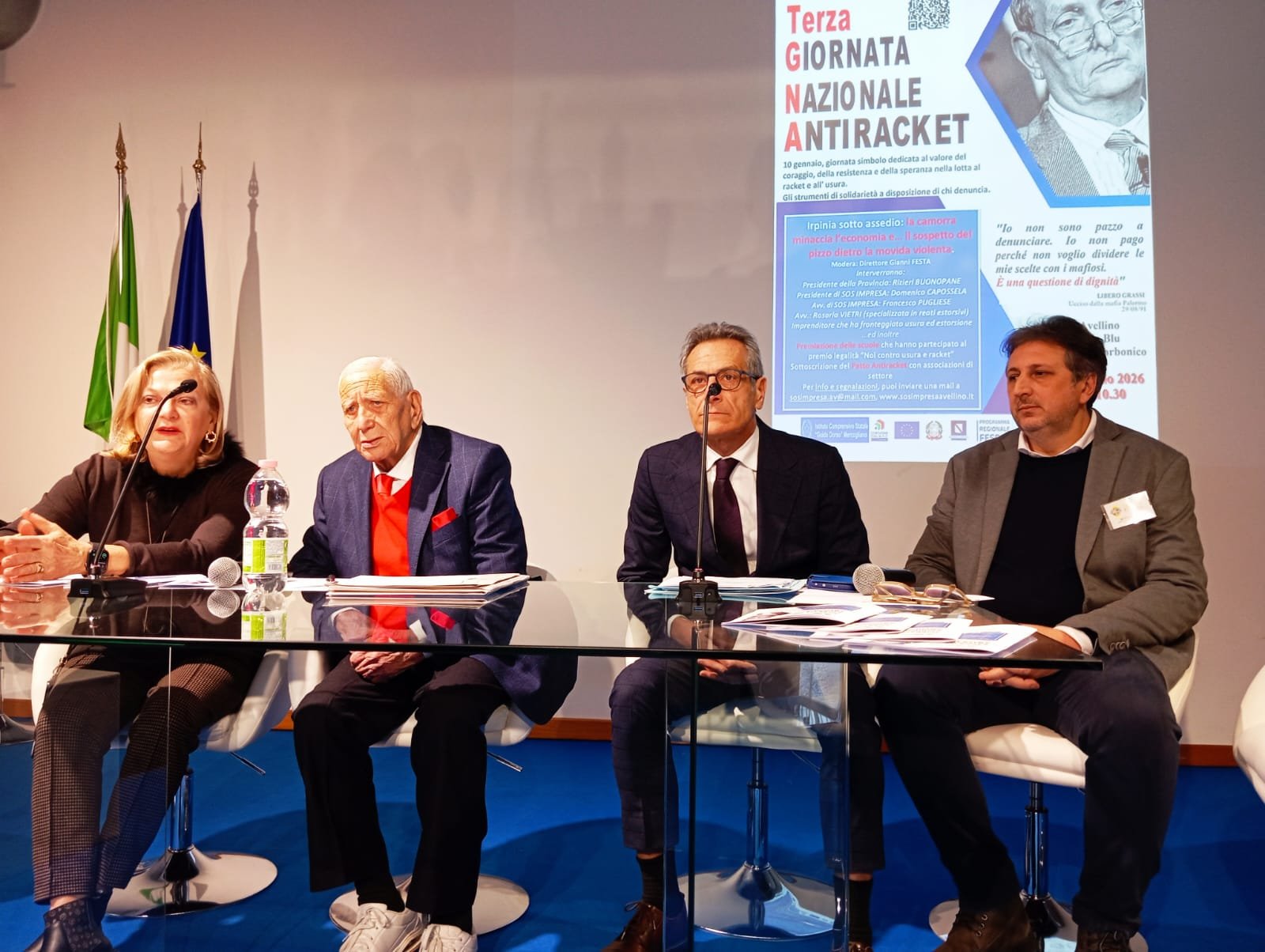 Al convegno, organizzato dal presidente di Sos Impresa Avellino Domenico Capossela nell’ambito della Terza Giornata Anti Racket. sta partecipando anche il direttore del Corriere dell’Irpinia Gianni Festa.