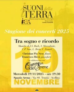 Un viaggio tra sogno e ricordo. E’ il concerto in programma il 19 novembre, alle 19.30, nella cornice di Spazio Arena. nell’ambito della rassegna “Suoni della Terra”, con la direzione artistica di Carmine Santaniello, su musiche di Bach, Mercadante, Nese,…