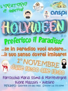 Sabato 1 novembre, dalle ore 18 alle ore 19.30, l’Oratorio Anspi della Parrocchia Maria SS.ma di Montevergine in Rione Mazzini ad Avellino ospiterà la festa “Holyween 8.0 – preferisco il Paradiso”, un evento dedicato ai bambini per celebrare la vera…