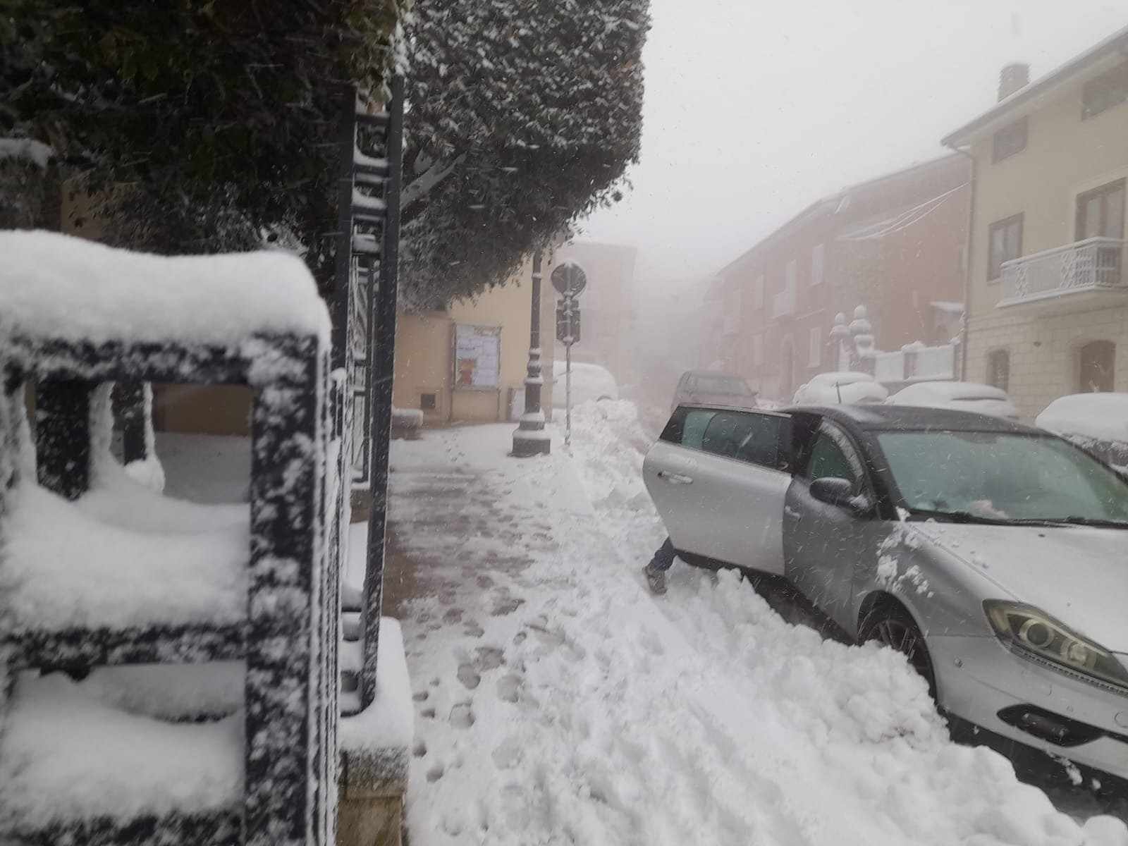 FRIGENTO – Una domenica innevata che ha richiamato tante famiglie dei Comuni sulla montagna di Frigento. Un numero di visitatori insolito dovuto alla neve e le famiglie hanno potuto far giocare i propri figli nella neve frigentina. La neve è caduta ininterrottamente, tra l’incredulità dei frigentini, nel pomeriggio. Tante le auto parcheggiate vicino la villa Comunale dove i più piccoli vestiti per l’occasione hanno scorrazzato all’interno del parco ricoprendosi di neve. Meta molto apprezzata è stata anche quella dei Limiti, la passeggiata panoramica, situata nella parte più alta del paese, dove i più coraggiosi, a causa della strada difficile da percorrere, si sono diretti. Qualche disagio c’è stato per i residenti costretti, una volta tanto, a fare molta attenzione al traffico veicolare. La neve aveva cominciato a imbiancare Frigento sin dalla mezzanotte ed ha continuato lentamente per l’intera nottata. La mattina è stata quasi una sorpresa per i residenti che hanno tirato fuori doposcì, tute e giacconi appositi per l’occasione.