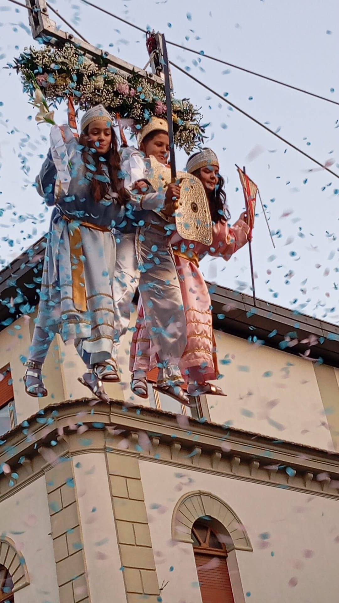 Ma gli occhi di tutti erano rivolti verso l’alto, per loro: Celeste De Vito, Pellegrino Musto e Aurora Romano. I tre bambini, visibilmente emozionati ma coraggiosi, hanno rappresentato la purezza degli angeli, diventando il simbolo vivente di una fede che si tramanda di generazione in generazione. Le loro voci e la loro presenza sospesa tra terra e cielo hanno regalato momenti di autentica commozione a tutti i presenti.