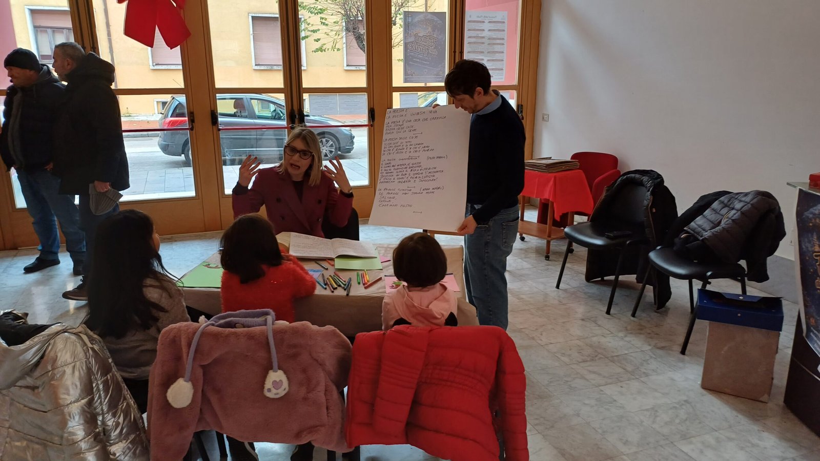 Uno spazio che diventa laboratorio di idee, pensato per abbracciare grandi e piccini. E’ il Festival delle fiabe, partito il 23 dicembre scorso, nella cornice dell’Eliseo, per proseguire fino al 6 gennaio promosso dal Comune di Avellino e curato dalla Bottega del Sottoscala. E’ Nicola Mariconda della Bottega del Sottoscala a spiegare come “Ad alternarsi fino al 6 gennaio saranno laboratori artistici e narrativi, come quello di questa mattina dedicato alla poesia, tenuto da Caspar Campania per insegnare loro come la poesia si nutra di contenuto e sonorità, giocando con la fantasia. In serata saranno di scena spettacoli dedicati alle famiglie, per avvicinare i piccoli alla musica e al linguaggio teatrale, dal concerto di Natale del coro Diapason alla “Rivolta delle pecore” che affronta i temi ambientali don la musica dei Barabba Blues, dal Concerto della Sonora Junior Sax, orchestra composta da 60 sassofoni Avellino a “La befana vien Ridendo” spettacolo di cabaret con Gino Fastidio e Mino Abbacuccio comici di punta della trasmissione Made in Sud. Spettacoli ai quali si affianca il percorso artistico “Avellino si mostra” dedicato agli artisti irpini. In mostra le opere di alcuni protagonisti del panorama artistico campano, Giovanni Spiniello, Lucio Finale, Gianni Spagnuolo con il suo omaggio a Pasolini, Angelo De Pascale, Fabiana Gradisca, Jessica Perna, un itinerario che abbraccia linguaggi differenti dall’informale al figurativo. A campeggiare all’ingresso L’albero Vagabondo realizzato dal Maestro Giovanni Spiniello per lanciare un messaggio forte contro i rifiuti”. Ed è un viaggio carico di suggestioni quello che consegna l’itinerario “Si mostra”, dai frammenti di forma e colore che si sfidano in una tensione di ordine e caos nell’arte di Finale all’universo fatato di Spiniello fino alla ricerca di Spagnuolo, specializzato nella realizzazione di murales e street painting che consegna il suo sguardo su Pasolini e i miti del nostro tempo o ancora il gioco di forme e colori di Angelo De Pascale.