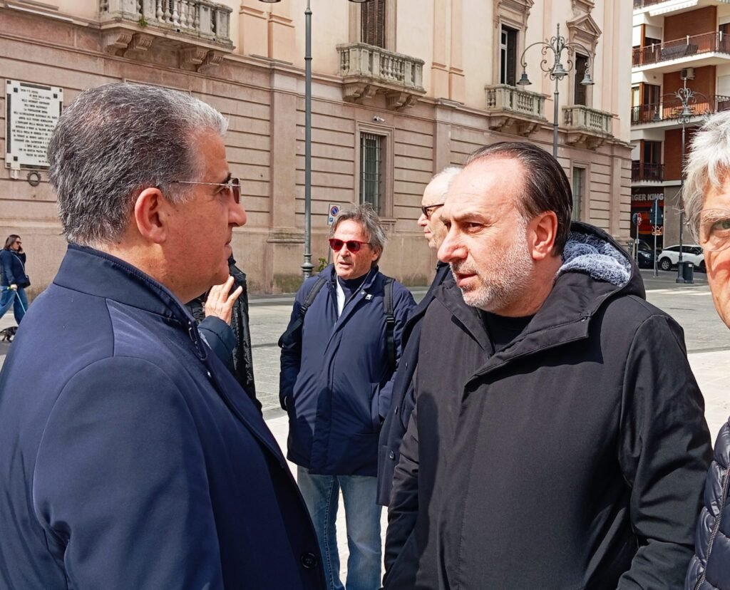 Da una parte c’è il sindaco di Grottaminarda, Marcantonio Spera, dall’altra il sindaco di Mercogliano Vittorio D’Alessio.