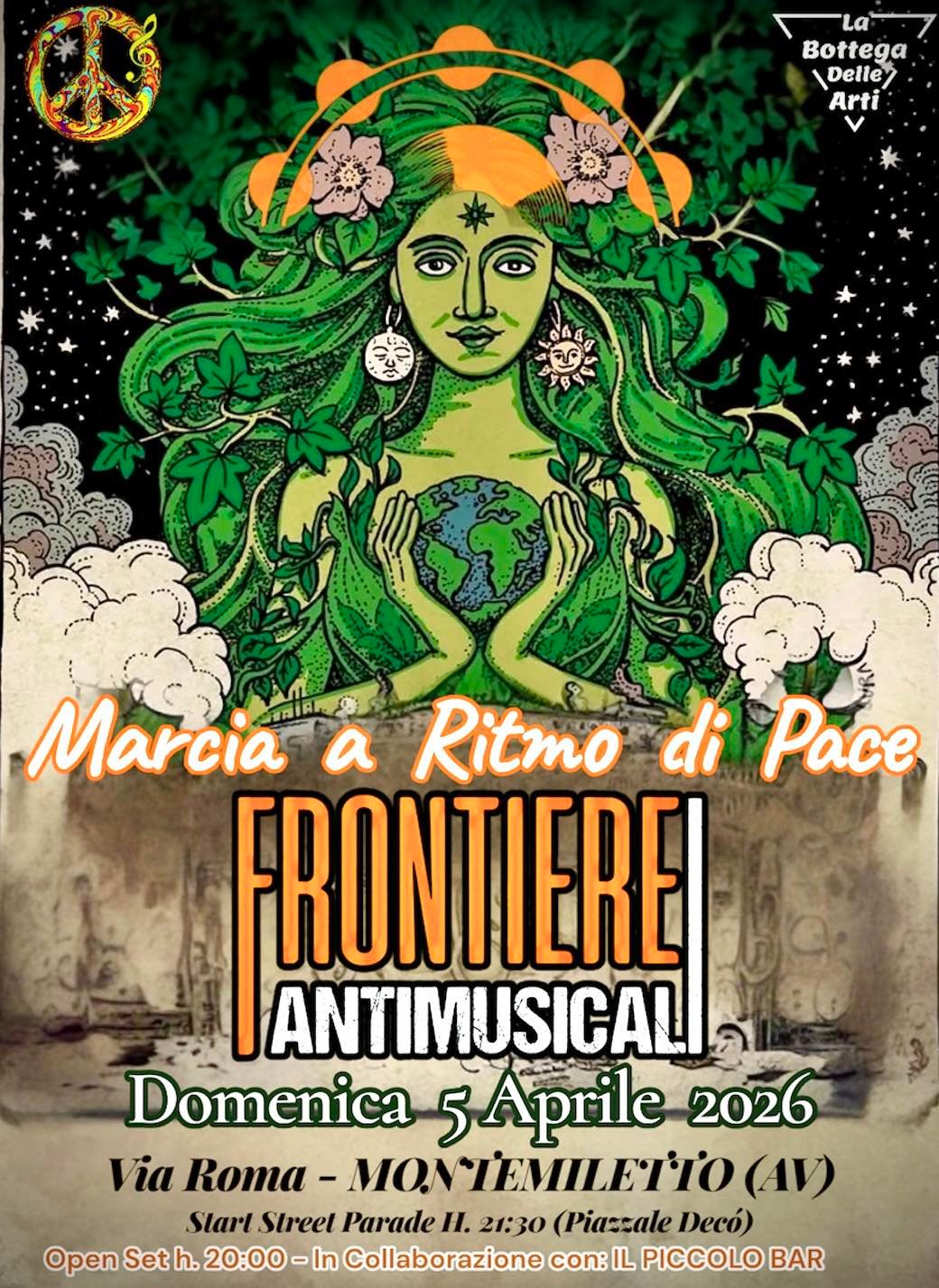 Una marcia a ritmo di pace. E’ il progetto firmato Frontiere Antimusicali in programma il 5 aprile, alle 21, a Montemiletto, in via Roma. “Una street parade, in cui la musica diventa strumento capace di unire e rilanciare il valore della pace – spiega il musicista Walter Vivarelli – poichè le musiche del mondo non conoscono barriere, parlano una lingua universale. E’ un format che rappresenta una novità con carri accompagnati da musica come nelle Street Parade delle grandi capitali d’Europa”. “Abbiamo scelto di abbattere la distanza tra artisti e pubblico, in una festa capace di coinvolgere tutti. A prendere forma un vero e proprio urlo della pace nel segno della rinascita interiore che è l’essenza della Pasqua” sottolinea Adolfo Annecchiarico, tra gli artefici del progetto “Frontiere Antimusicali” che parte dalle musiche popolari per riadattarle in chiave contemporanea, fondendo percussioni, dj set, groove ed elettronica.