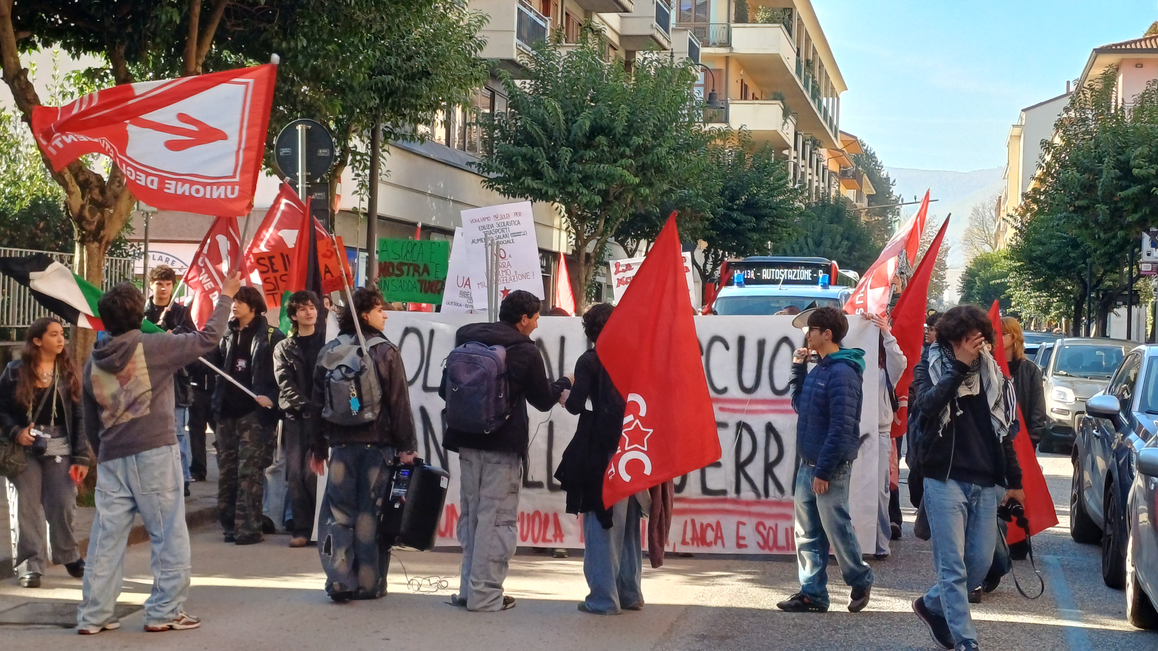 “E’ una scuola incapace di rispondere ai nostri bisogni, che continua ad essere poco inclusiva e non riesce a garantire a tutti gli stessi diritti, nella quale non si investe abbastanza, preferendo destinare risorse al riarmo”. E’ Antonio Soldi dei Giovani Comunisti a spiegare le ragioni della manifestazione di protesta organizzata da Collettivo studentesco, Giovani Comunisti, Unione degli studenti, Unione Giovani di Sinistra. Al loro fianco anche Cgil e altre associazioni del territorio. Gli studenti delle scuole superiori irpine con striscioni e slogan “Soldi alla scuola non alla guerra”, hanno sfilato in corteo dalla chiesa di San Ciro fino a piazza Libertà: “Scendiamo in piazza – prosegue Soldi – contro le politiche liberiste del nostro governo che vuole destinare il 5% del Pil alle spese militari, da un investimento pari a 33 miliardi si passerebbe ai 100 miliardi. Una scelta inaccettabile, poichè si tratta di soldi che potrebbero essere, invece, destinati a scuola, sanità e welfare, settori cruciali per garantire il benessere della popolazione. Al tempo stesso, chiediamo che siano tutelati i diritti di tutti i cittadini italiani in contrasto con il DDl sicurezza che limita la possibilità del dissenso. Né possiamo dimenticare la sofferenza del popolo palestinese, continuiamo a denunciare la complicità del governo italiano nelle violenze compiute. Una complicità che si manifesta attraverso il sostegno ad aziende che hanno rapporti commerciali o vendono armi a Israele”. Un appello, quello lanciato dai ragazzi, che è anche una contestazione al sistema scolastico. Gli studenti in piazza chiedono “una scuola pubblica, laica e solidale”, che si tenga conto della loro voce nella didattica e nell’organizzazione di un sistema che appare “sempre più competitivo, tanto da mettere a dura prova la salute mentale di noi studenti, non riesce ad essere al passo con i tempi, non promuove l’educazione sessuale, né riesce a contrastare in maniera adeguata la cultura patriarcale che ancora caratterizza il nostro paese e l’Occidente”.