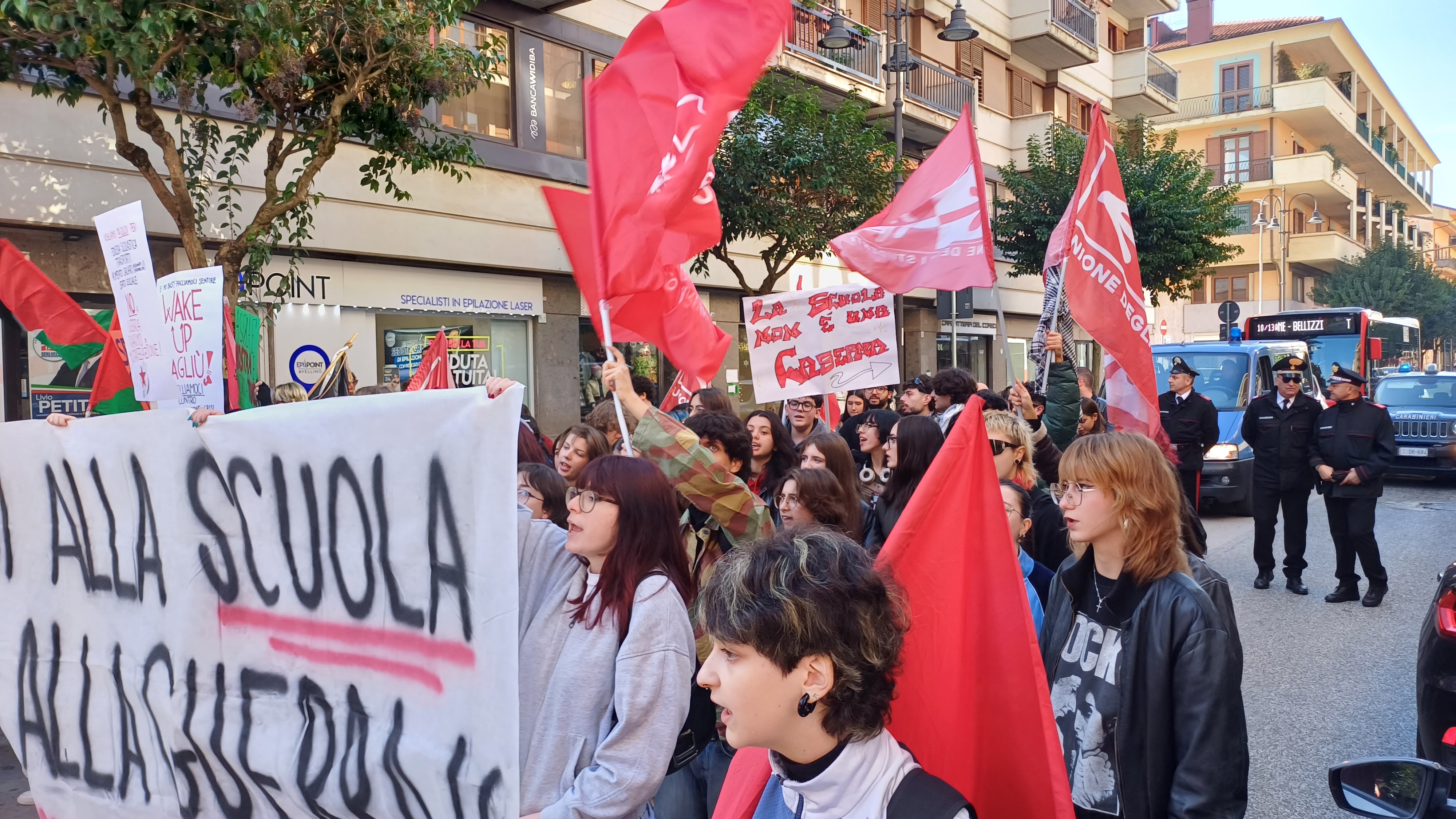“E’ una scuola incapace di rispondere ai nostri bisogni, che continua ad essere poco inclusiva e non riesce a garantire a tutti gli stessi diritti, nella quale non si investe abbastanza, preferendo destinare risorse al riarmo”. E’ Antonio Soldi dei Giovani Comunisti a spiegare le ragioni della manifestazione di protesta organizzata da Collettivo studentesco, Giovani Comunisti, Unione degli studenti, Unione Giovani di Sinistra. Al loro fianco anche Cgil e altre associazioni del territorio. Gli studenti delle scuole superiori irpine con striscioni e slogan “Soldi alla scuola non alla guerra”, hanno sfilato in corteo dalla chiesa di San Ciro fino a piazza Libertà: “Scendiamo in piazza – prosegue Soldi – contro le politiche liberiste del nostro governo che vuole destinare il 5% del Pil alle spese militari, da un investimento pari a 33 miliardi si passerebbe ai 100 miliardi. Una scelta inaccettabile, poichè si tratta di soldi che potrebbero essere, invece, destinati a scuola, sanità e welfare, settori cruciali per garantire il benessere della popolazione. Al tempo stesso, chiediamo che siano tutelati i diritti di tutti i cittadini italiani in contrasto con il DDl sicurezza che limita la possibilità del dissenso. Né possiamo dimenticare la sofferenza del popolo palestinese, continuiamo a denunciare la complicità del governo italiano nelle violenze compiute. Una complicità che si manifesta attraverso il sostegno ad aziende che hanno rapporti commerciali o vendono armi a Israele”. Un appello, quello lanciato dai ragazzi, che è anche una contestazione al sistema scolastico. Gli studenti in piazza chiedono “una scuola pubblica, laica e solidale”, che si tenga conto della loro voce nella didattica e nell’organizzazione di un sistema che appare “sempre più competitivo, tanto da mettere a dura prova la salute mentale di noi studenti, non riesce ad essere al passo con i tempi, non promuove l’educazione sessuale, né riesce a contrastare in maniera adeguata la cultura patriarcale che ancora caratterizza il nostro paese e l’Occidente”.