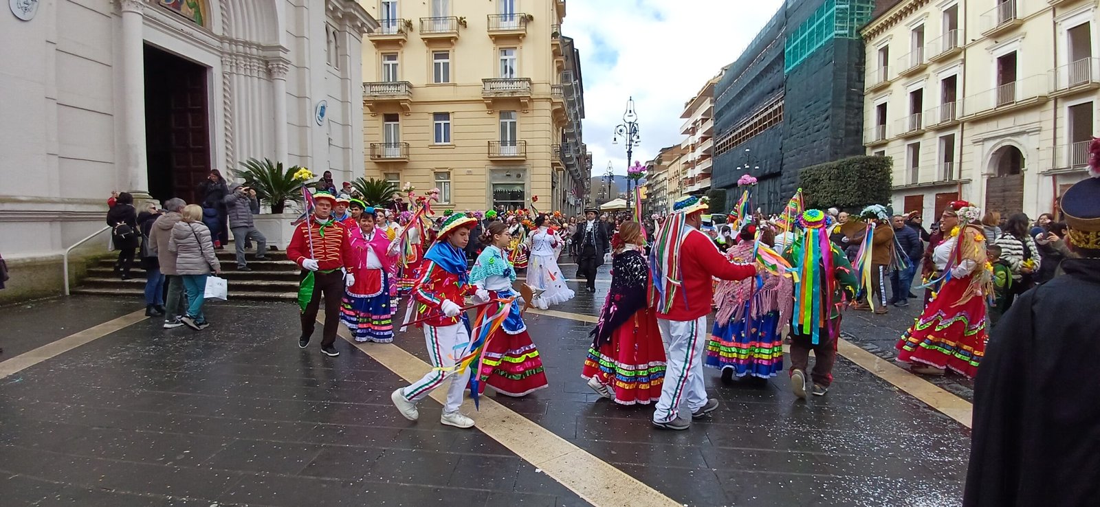 Sono più forti del tempo incerto i Carnevali d’Irpinia, confermando la loro capacità di unire generazioni, raccontando un territorio e le sue tradizioni. A sfilare oltre venti gruppi del territorio, dalle zeze al ballo n’treccio, frutto dell’impegno di gruppi folk e pro loco con il sapiente coordinamento del presidente provinciale Unplo Giuseppe Silvestri. Assente la zeza di Bellizzi, a causa del lutto che ha colpito alcune delle famiglie protagoniste della tradizione, a sfilare sono la zeza di Cesinali, la zeza di Mercogliano, la zeza diCapriglia, la zeza di Montemiletto, Mascarata Ma:Bi di Serino, Mascarata Rivus di Serino, Mascarata Sala di Serino, la zeza di Monteforte, I Tarantellati di Volturara, il Laccio d’amore di Quindici, il Laccio d’amore di Moschiano, il Laccio d’amore di Pago, il Laccio d’amore di Taurano e Marzano, il Ballo Ndreccio dei Lupett Petruresi, Mascarata e Zeza di Piazza di Pandola di Montoro, Mascarata I Figlioli di Montoro, Ballo Ndreccio di Borgo Montoro, gli Squacqualachiun di Teora. Ciascuno conserva la sua specificità, la sua storia, le sue maschere inconfondibili, dalla Vecchia al prete che dovrebbe celebrare le nozze di Pulcinella e Zeza fino ai barbieri e vive del coinvolgimento della comunità e delle nuove generazioni. Ed è un’esplosione di colori, canti e balli, spettacoli e coreografie che celebrano lo stare insieme, riuscendo sempre a catturare l’attenzione del pubblico, divertendo e sorprendendo per la ricchezza e varietà.