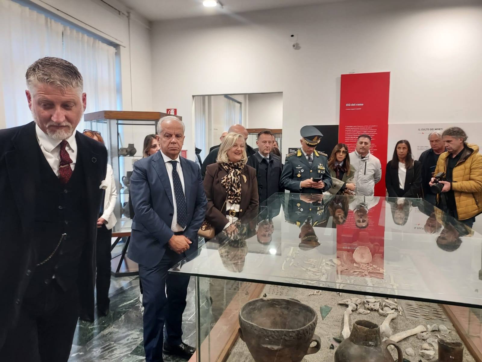 I ministri Matteo Piantedosi e Alessandro Giuli hanno fatto tappa questo pomeriggio al Museo Irpino. E’ stata l’occasione per una speciale visita guidata tra i tesori della sezione Archeologica del Museo e preziosi manoscritti e opere a stampa della Biblioteca Provinciale S. e G. Capone di Avellino. I ministri hanno avuto parole di elogio per i funzionari e per il Museo, sottolineando la ricchezza dei reperti e dei manoscritti custoditi che si fanno racconto della storia d’Irpinia. A fare gli onori di casa il presidente della Provincia Rizieri Buonopane e il commissario prefettizio Giuliana Perrotta.