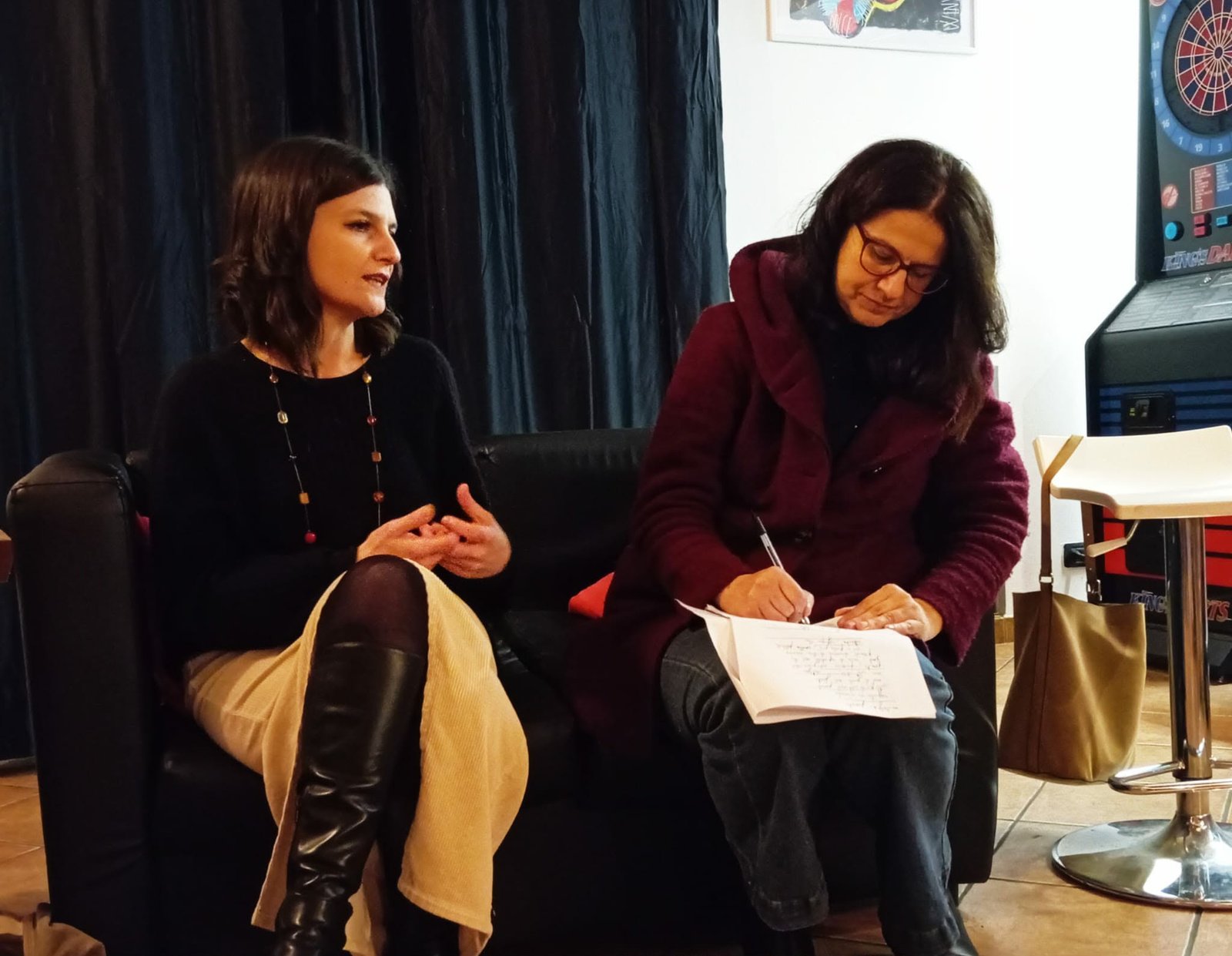 A dialogare con lei la giornalista Floriana Guerriero che pone l’accento sulla forza di una prosa di grande intensità, di un racconto in cui il quotidiano è scandito dalla presenza del mare con la sua duplicità ma anche dai tanti rituali collettivi che danno senso alle giornate, dalla processione della Madonna del Mare, che si svolge di notte, in cui ciascuno è solo con il proprio dolore, incurante degli altri, alla preparazione della lasagna di Ferragosto o ancora il cinema all’aperto, rituali strettamente collegati a cibi e oggetti che diventano una sorta di correlativo oggettivo delle emozioni o portale per viaggiare nel tempo. Bianca ci ricorda come ogni forma di scrittura è politica “Quando andavamo al mare da piccola, sentivo sempre i caccia militari che decollavano e atterravano nella vicina base Nato. E mi sembrava assurdo che a pochi passi da noi, mentre eravamo in vacanza, nell’acqua o sul bagnasciuga, la gente continuasse a morire. Volevo restituire questa idea di un mare che sa essere anche crudele, basti pensare alla strage di migranti di Cutro”. E ammette “Ho un pessimo rapporto con l’identità, ripartire dalla memoria significa non solo sbandierare l’orgoglio per la nostra storia e i nostri paesaggi, non possiamo dimenticare gli errori fatti. E’ tempo di ribadire a gran voce che i cittadini del territorio hanno bisogno di una programmazione attenta, di servizi e infrastrutture”.