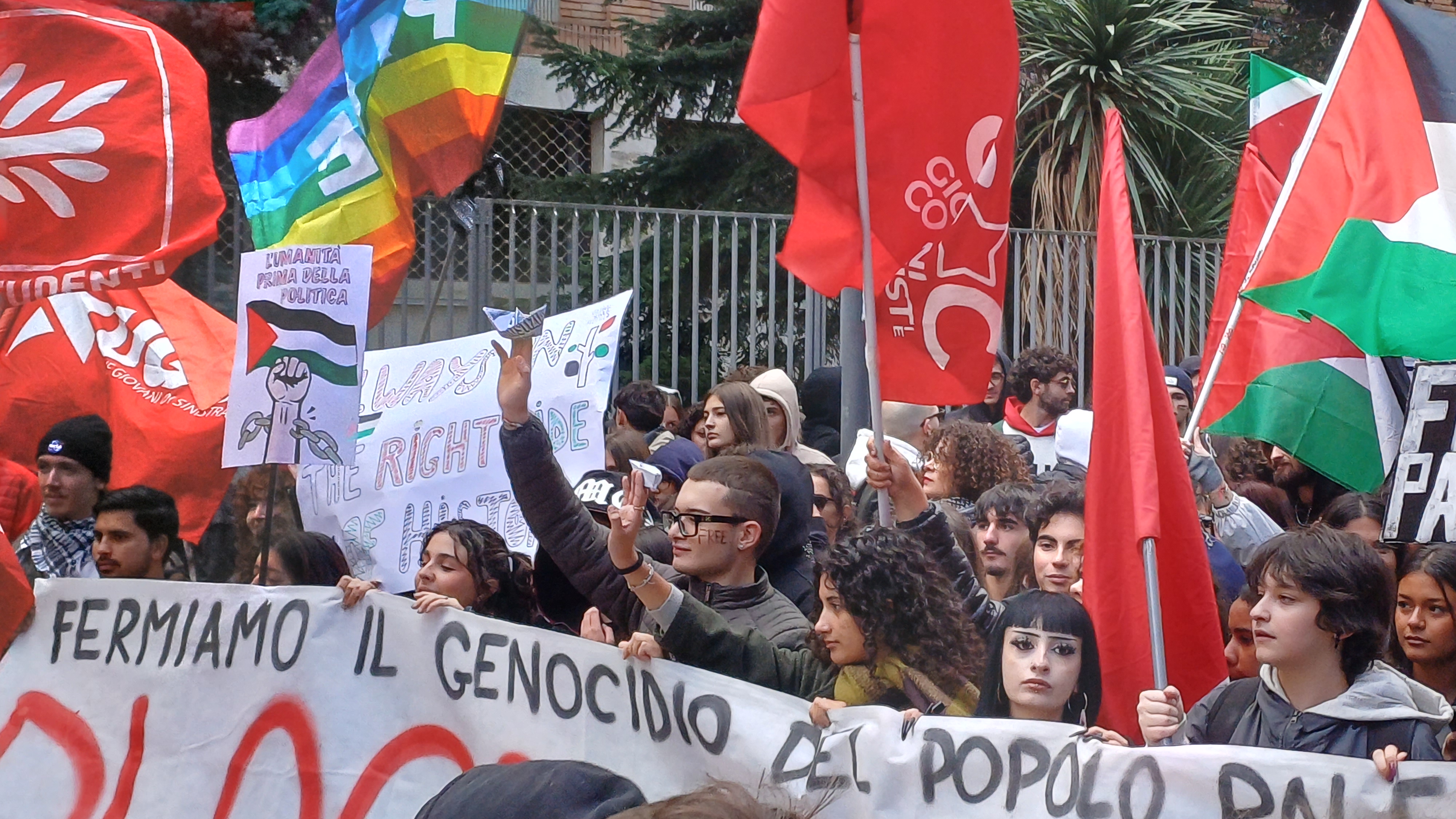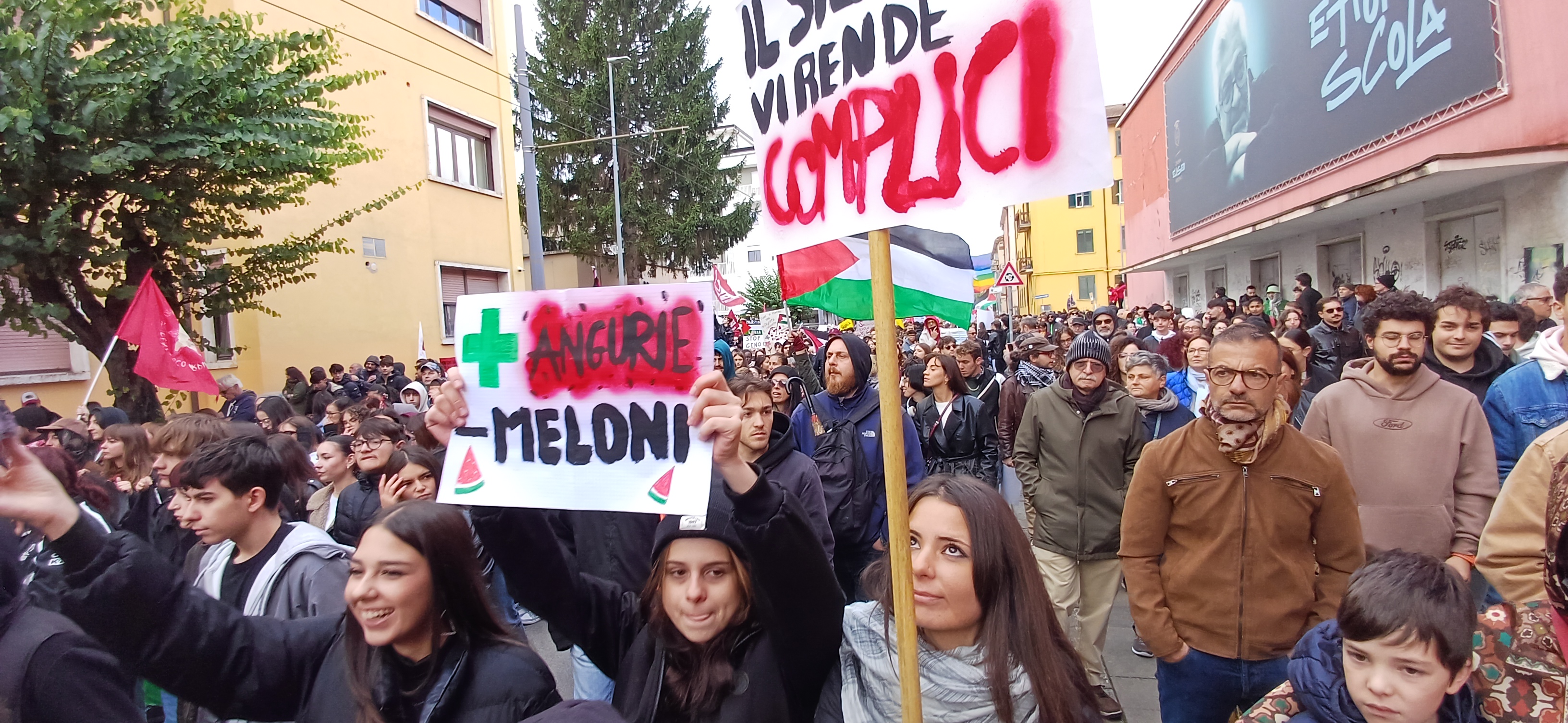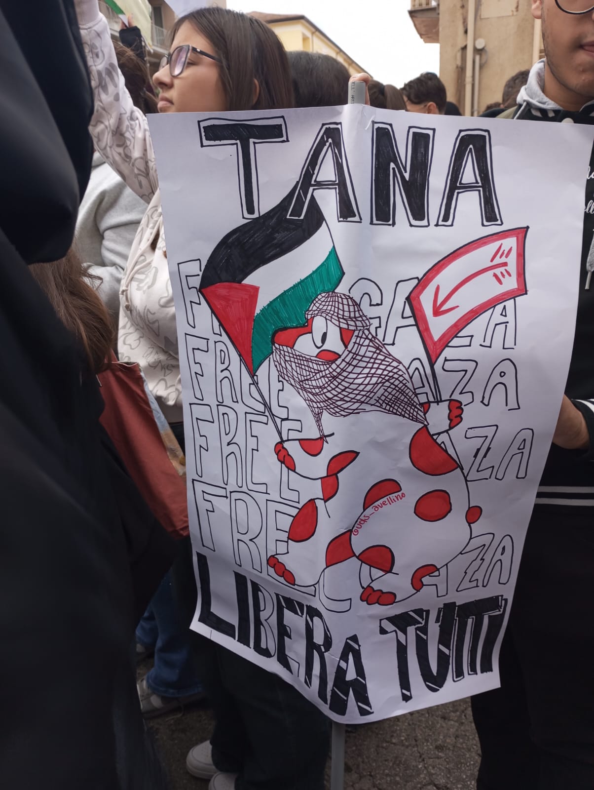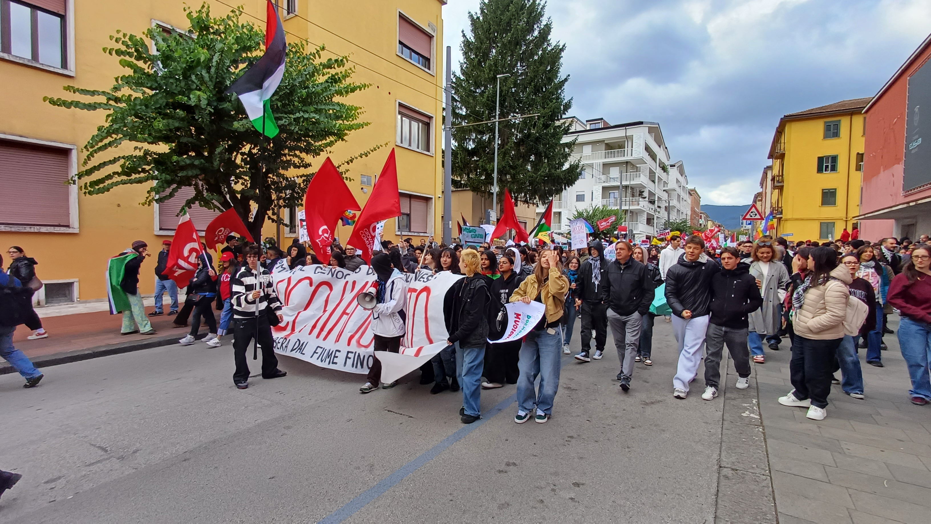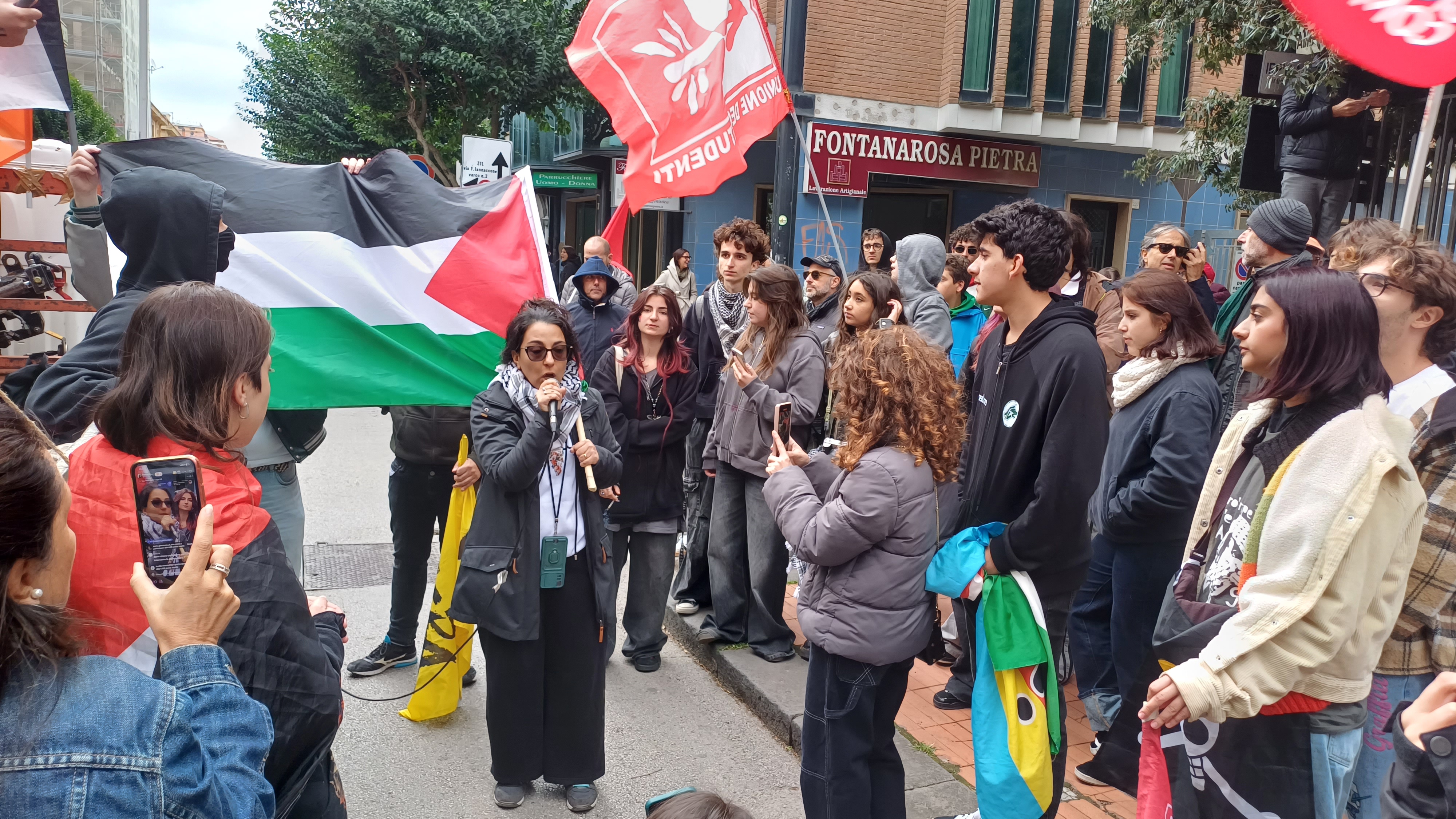“Questa piazza è un pezzo di Gaza”. Sono le parole che risuonano lungo il corteo, insieme alle note di Bella Ciao, per ricordare ai potenti del mondo che Gaza resiste e la Palestina esiste, per essere al fianco di chi, come i volontari della flotilla, ha avuto il coraggio di non restare in silenzio. A sfilare, decisi a “bloccare tutto” perchè è l’unica soluzione possibile, non è solo il mondo della scuola con studenti e insegnanti, ci sono genitori e figli, lavoratori di tutti i settori, operai, medici, avvocati, associazioni, giovani e meno giovani in un abbraccio che è per Gaza, per gli attivisti arrestati, per i palestinesi che continuano ad essere decimati dalla carestia. Sono quasi duemila.”Le nostre manifestazioni nelle piazze non sono state inutili. – spiega Luca Cioffi di Arci – Abbiamo messo con le spalle al muro i governi. Non sappiamo ancora quando ritorneranno a casa i volontari, fermati malgrado le leggi del diritto internazionale diano loro ragione ma sappiamo che siamo qui anche per difendere il diritto di sciopero, messo in discussione dal governo Meloni. L’unico modo che abbiamo per far sentire la nostra voce è stare nelle piazze. Intanto, abbiamo consegnato un documento in Prefettura, chiedendo al governo italiano di smettere di finanziare l’economia del genocidio. L’imbarazzo dei nostri governanti è palese. Poche persone su delle barchette a vela si sono opposti al sistema, dimostrando come sia in atto il tentativo di sterminare la popolazione palestinese e quanto il diritto internazionale sia inutile se funziona solo a giorni alterni. Altrimenti a prevalere sarà sempre la legge del più forte”.