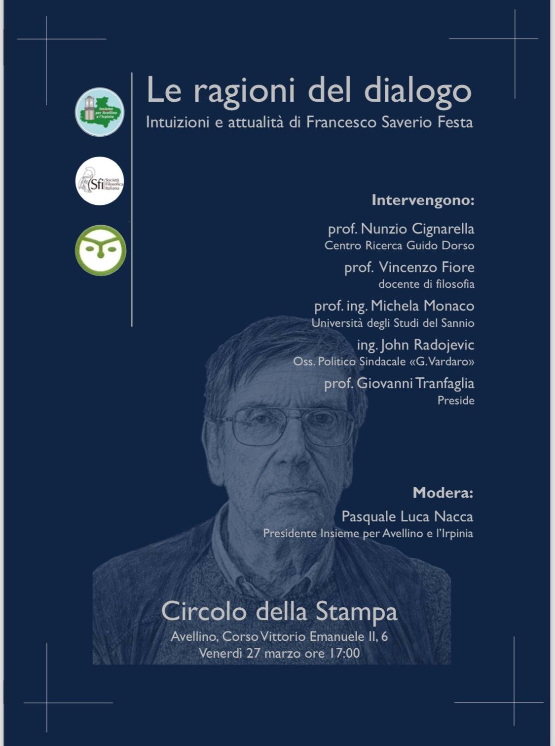 A sette anni dalla scomparsa del professor Francesco Saverio Festa, figura di grande rilievo nel panorama culturale avellinese e maestro capace di formare intere generazioni, la città di Avellino si prepara a rendergli omaggio con un incontro pubblico dal titolo “Le ragioni del dialogo. Intuizioni e attualità di Francesco Saverio Festa”.