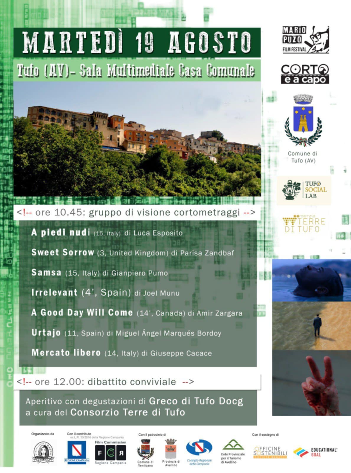 Mario Puzo Film Festival – Corto e a capo è nato nel 2015 con l’obiettivo di diffondere la cultura cinematografica attraverso proiezioni e incontri con autori, attori e protagonisti del cinema, privilegiando quelle figure che si muovono al di fuori dei circuiti ufficiali e dei canali classici di fruizione. Si svolge in paesi della provincia irpina dove spesso diviene l’unica possibilità di entrare in contatto con le opere cinematografiche senza doversi spostare. Ogni anno Corto e a capo ha un tema specifico, intorno al quale viene costruita tutta l’edizione tra cinema, musica, incontri con ospiti, libri e documentari partecipati.
