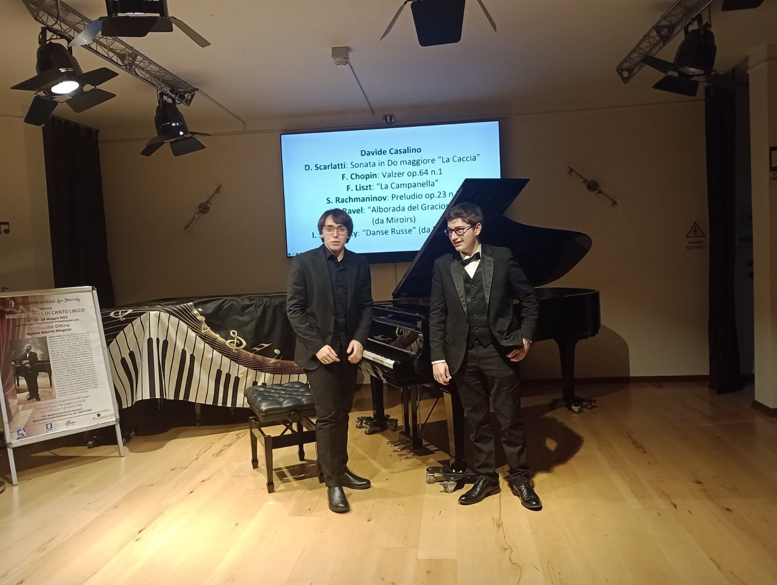 Davide Casalino ha continuato il racconto con la Sonata “La Caccia” di Scarlatti, fresca e vibrante come un gioco di sguardi tra innamorati. Il Valzer Op.64 n.1 di Chopin ha portato con sé il dolce rimpianto di un ballo sospeso nel tempo, mentre con La Campanella di Liszt l’entusiasmo è salito alle stelle, tra scintille di virtuosismo e pura esuberanza. Il Preludio Op.23 n.2 di Rachmaninov ha risuonato come una confessione d’amore, profonda e struggente, aprendo la strada all’energia travolgente di Alborada del Gracioso di Ravel, un canto d’amore e desiderio.