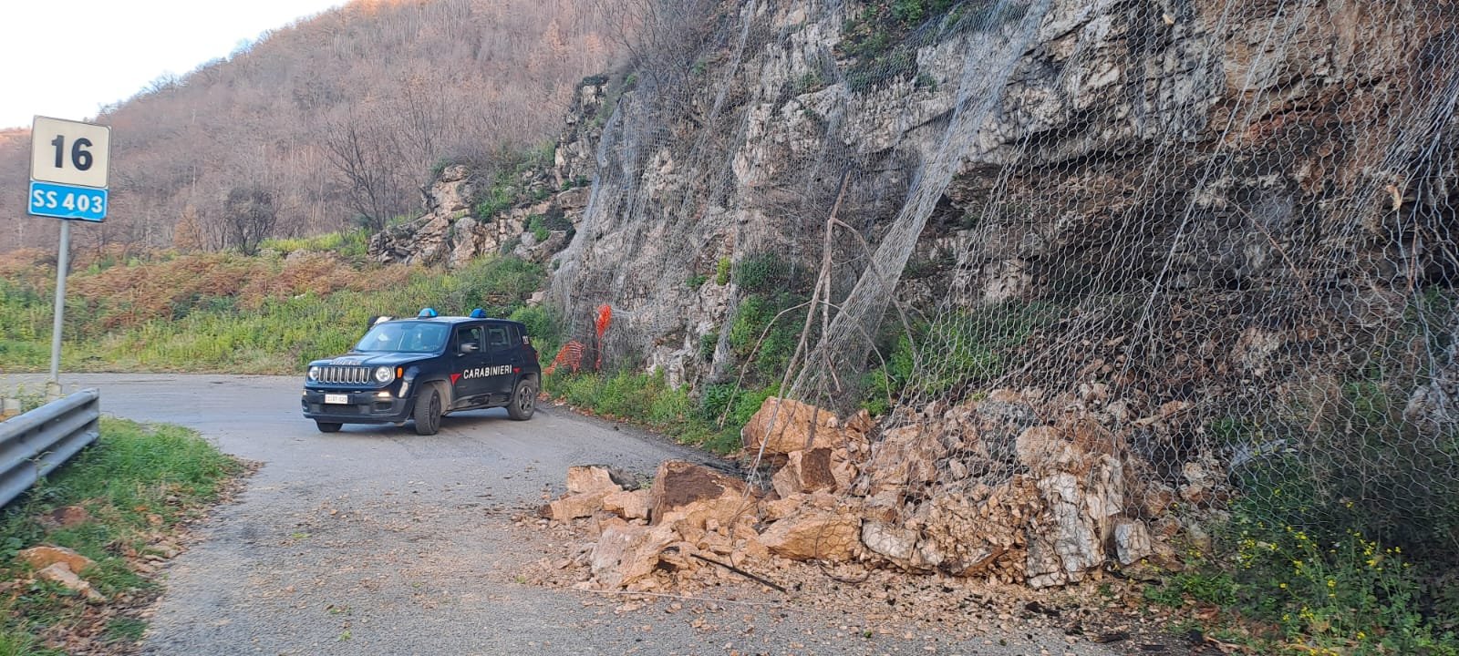 Moschiano, al km,16 della strada statale (c.d. Santa Cristina), vi è stato uno smottamento che, trattenuto dalle reti di sicurezza anticaduta, ha parzialmente invaso la corsia di marcia. Sul posto i Carabinieri della Compagnia di Baiano. Transito regolare a senso unico alternato.