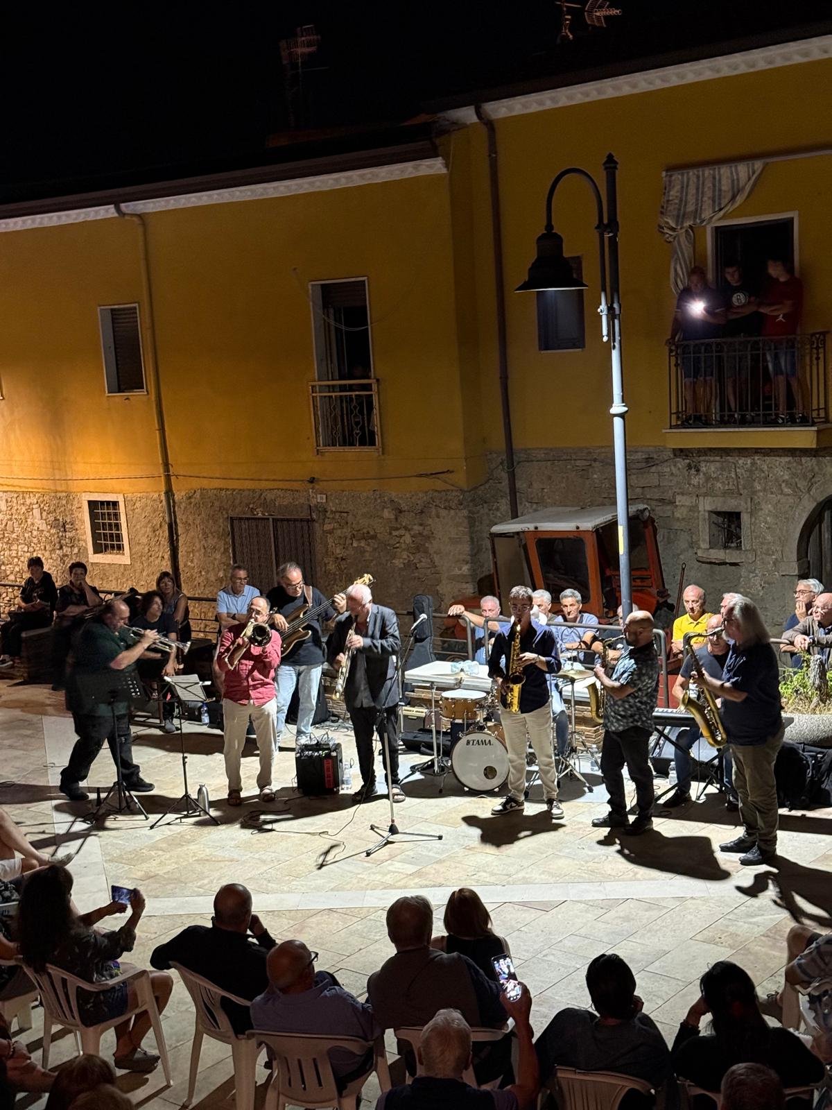 Ad esibirsi in Piazza “F. De Sanctis” i bambini dell’associazione “Un Battito d’ali APS” che hanno dato prova della loro abilità nel suonare le percussioni, accompagnati dagli organetti di Vincenzo Chiauzzi e Federico Zarrilli, e dalle artistiche danze della scuola “Dream Dance” di Debora Damiano, con un ospite d’eccezione Cristian Querques. Quindi spazio alla Lacedonia Jazz Session – Jam gli Artisti delle Radici, musicisti molto conosciuti tanto a livello nazionale quanto internazionale. Protagonisti Pasquale Innarella al sax tenore; Paolo Innarella al flauto e sax; Rocco Melillo alla tromba; Giuseppe La Stella al trombone; Antonio Pignatiello testi, chitarra e voce; Luigi Rinaldi al sax alto; Sergio Picucci al basso; Leo Marcantonio alla batteria; Marco Contardi al piano; Nicola Pignatiello alle chitarre. L’iniziativa si inserisce nell’ambito dell’Accordo per la Coesione della Regione Campania, DGR 504 del 24/09/2024 – Fondo per lo Sviluppo e la Coesione (FSC) 2021-2027 – Fondo di rotazione ex lege 183/1987 DGR n. 616/2024 Piano strategico Cultura e Turismo 2025 –programma unitario di percorsi turistici di tipo culturale, naturalistico ed enogastronomico di portata nazionale e internazionale,