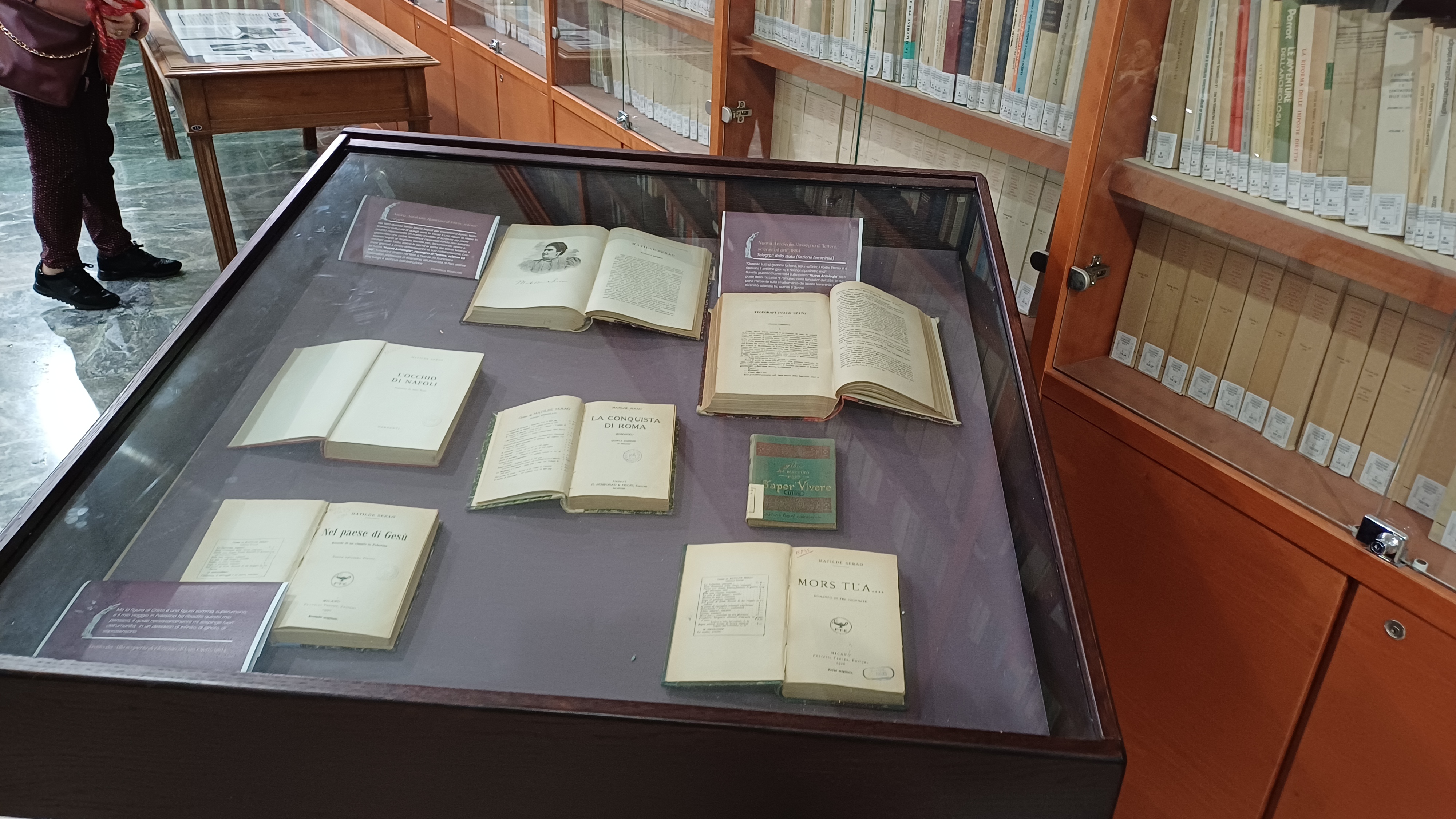 Un incontro impreziosito da una bella mostra che riunisce alcuni dei suoi romanzi e articoli e racconti pubblicati su rivista, dal giornale letterario Il Novelliere dove nel 1878 appare la novella Fanciullo biondo firmata con lo pesudonimo Tuffolina, nata dal titolo di una scultura di Odoardo Tabacchi al Piccolo diretto da Rocco De Zerbi fono al quotidiano Il Fanfulla tra i più importanti settimanali dell’Italia post unitaria, diretto da Capuana, di cui Serao fu una firma prestigiosa, dalla Cronaca Rosa al Giornale di Napoli con la rubrica “Novità letterarie e critiche teatrali”. Una mostra che ci ricorda come le redazioni ottocentesche erano un olimpo maschile ma la tenacia e la passione per la scrittura le furono d’aiuto. Del resto, il giornalismo rappresentava l’opportunità per emergere pubblicando romanzi o novelle prima in appendice e successivamente in volumi.