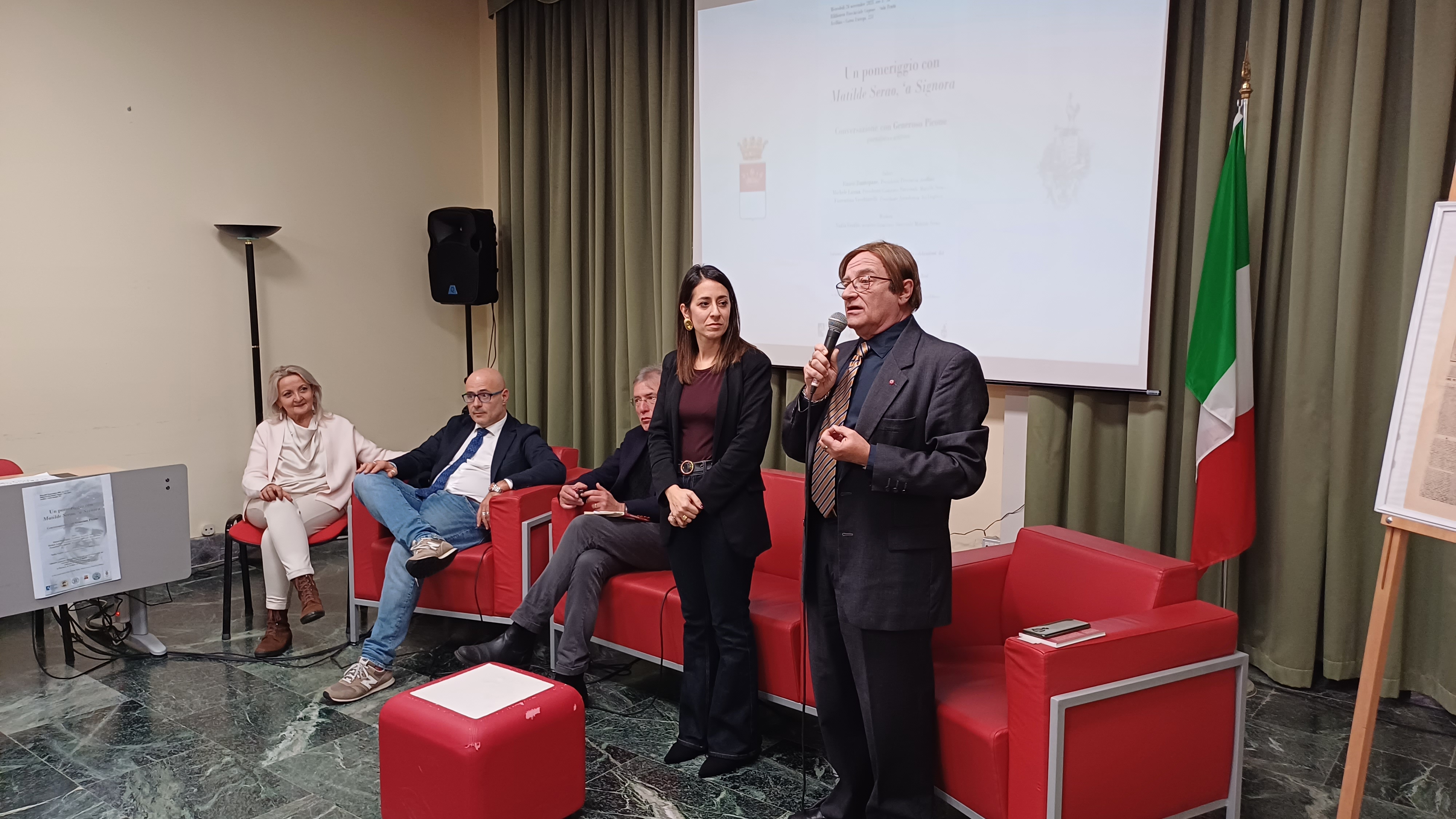 “Quella che ci consegna Matilde Serao è l’immagine di una città chiusa e buia, in cui il tempo sembra essersi fermato, che sfugge a una narrazione stereotipata, capace di entrare nelle viscere del reale”. E’ il giornalista Generoso Picone a raccontare la scrittrice e giornalista Matilde Serao, a partire dalla sua dimensione poliedrica. Un confronto promosso alla Biblioteca Provinciale dal Comitato Nazionale in occasione delle celebrazioni del centenario della morte promosso in collaborazione con la Provincia di Avellino e l’Accademia dei Dogliosi che si fa riflessione su passato, presente e futuro del capoluogo partenopeo, a partire dal volume dedicato da Nadia Verdile alla Serao. Una riflessione introdotta dagli interventi di Fiorentino Vecchiarelli dell’Accademia dei Dogliosi e da Emanuela Pericolo in rappresentanza della Provincia che sottolineano la capacità della Serao di precorrere i tempi. Picone sceglie di partire dalle contraddizioni della sua figura in cui convivono giornalismo e scrittura letteraria: “Prima direttrice di un giornale, è una narratrice che scrive sui giornali, capace di fare del giornalismo arma per penetrare la realtà. Racconta le condizioni delle fasce sociali meno abbienti ma il suo pubblico è rappresentato dalla borghesia. Afferma di voler scrivere ciò che vede ma poi un libro come ‘Il ventre di Napoli’ ha la sua genesi a Roma, lontano dal capoluogo partenopeo. E’ una moderata e monarchica, ma antifascista, non è una femminista ma dimostra grande attenzioni alle questioni delle donne. Non è un modello che può corrispondere alla donna di oggi ma certamente ha fatto cose che le donne del tempo non facevano. Se appare, a un primo sguardo, come una donna del focolare, madre e moglie, dimostra di essere l’esatto contrario con il suo essere giornalista e scrittrice”.