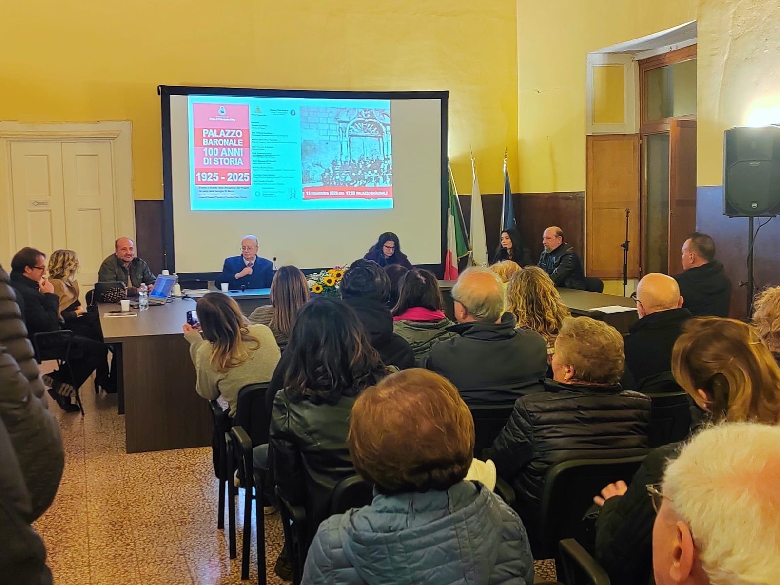 “Un presidio di libertà e civiltà, miracolosamente salvato dopo il terremoto del 1980, simbolo della rinascita possibile dell’intero borgo”. E’ il professore Francesco Barra a soffermarsi sul valore di cui si carica l’anniversario dei cento anni dalla donazione del Palazzo Baronale da parte della famiglia Di Marzo al Comune di Prata nel corso di un convegno “100 anni di storia” promosso dal Touring Club con il coordinamento di Fiorentino Pietro Giovino e Claudio D’Onofrio e il sostegno della Misericordia. “Il Palazzo Baronale – sottolinea Barra – ci ricorda come il passato rappresenti una risorsa da valorizzare, sul piano naturale, paesaggistico e turistico. Si carica di un valore simbolico forte poichè rappresenta un elemento di raccordo con quella parte di Prata cha attende ancora di essere salvata, dal centro storico, conservatosi proprio perchè abbandonato all’indomani del sisma. alla Basilica Paleocristiana, che nasconde nel territorio posto alle sua spalle una città scomparsa di epoca tardo antica. Un patrimonio, quello rappresentato dal passato, dal borgo alla bellezza dei castagneti fino all’industria legata al vino, che chiede di essere conosciuto per essere difeso”. Barra ricorda come il Palazzo Baronale sia stato testimone delle diverse vicende storico-politiche che hanno caratterizzato il territorio, dalla fine della proprietà feudale all’avvento della nuova borghesia legata alle professioni e all’industria, in un percorso che va dagli Zamagna, feudatari legati alla Repubblica di Ragusa ai Di Marzo, arrivati a Tufo nella seconda metà del ‘600, famiglia di notai e avvocati che, dopo la scoperta del minerale sulfureo nelle proprie terre, investiranno nell’industria con l’apertura delle miniere”.