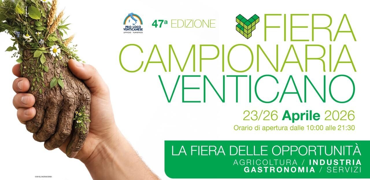 La Pro Loco Venticanese scalda i motori in vista dell’inizio “della 47esima edizione della più longeva Fiera Campionaria delle Aree interne del mezzogiorno: dal 23 al 26 aprile, nel Quartiere fieristico di Venticano, centinaia di aziende si presenteranno al pubblico, dalle 10 alle 21:30 per quella che già si presenta come la Fiera delle opportunità”.