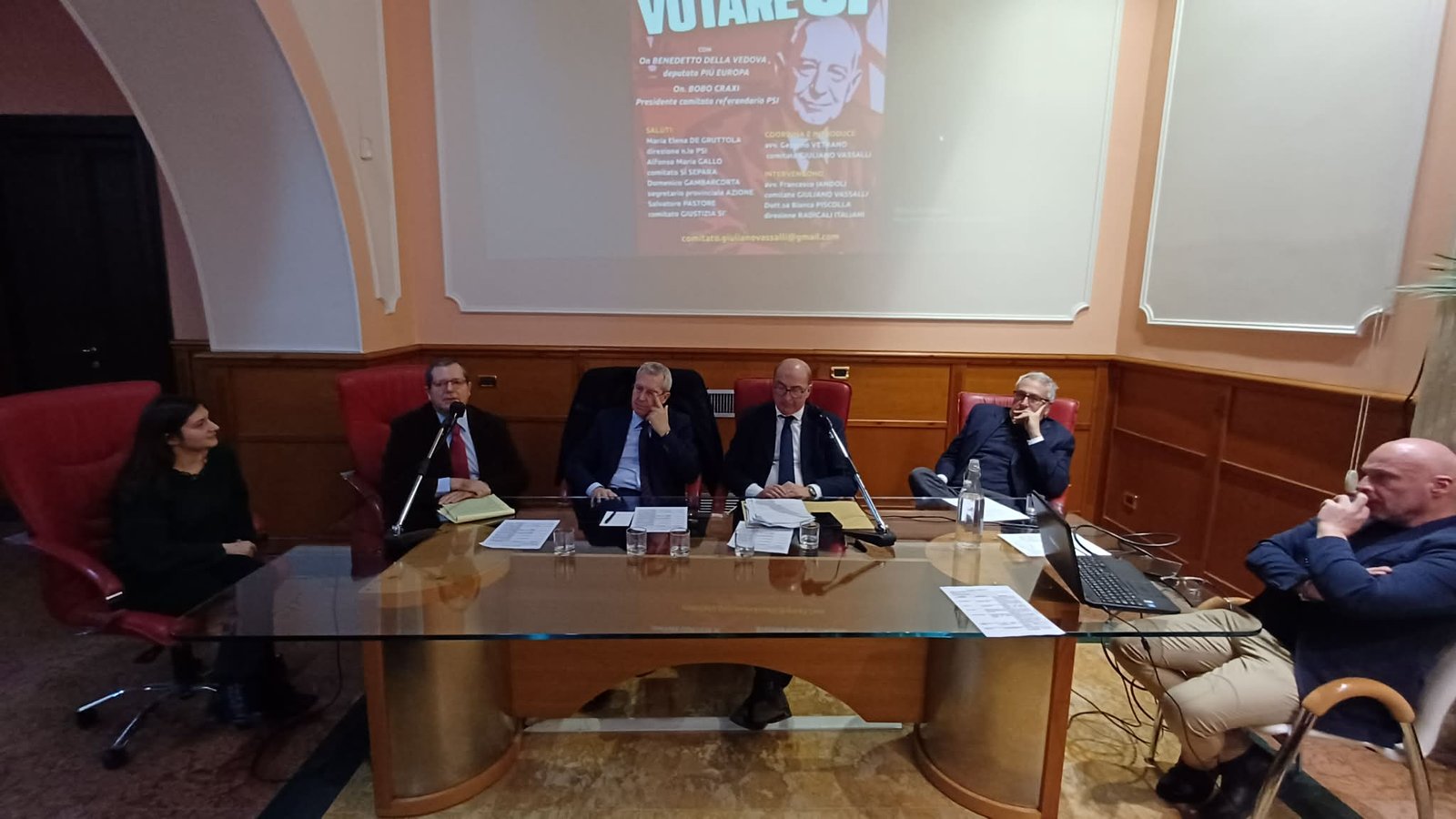 Spiega come “Il sorteggio dei membri del Csm diventa strumento per contrastare le correnti che caratterizzano il corpo della magistratura. Nate come spazio di confronto tra diverse scuole di pensiero, si sono trasformati in una bieca operazione partitica. Vogliamo rassicurare chi vota per il sì che non sta votando la Meloni ma secoli di impegno garantista, anzi votiamo sì per poter meglio battere la Meloni”. Una precisazione rilanciata da Bobo Craxi “Abbiamo scelto la nostra risposta sul referendum relativo alla riforma, senza preoccuparci di chi la proponeva, ma valutandola sulla base dei contenuti, trovando, poi, alleati involontari. Una riforma che già aveva tentato un governo di centrosinistra nel 1989 con il presidente del Consiglio D’Alema”. Spiega come “E’ fondamentale convincere le persone ad andare a votare a prescindere. La democrazia non è eterna, non è scontata e non può essere snobbata come spesso accade”. Ribadisce come “Si tratta dell’applicazione corretta dell’articolo 111 della Costituzione, che prevede la parità fra accusato e difesa e la neutralità del giudice. Il resto sono esposizioni propagandistiche”. E replica alle argomentazioni scelte per opporsi a questo disegno: “Ho sentito molti magistrati parlare, affermando di voler contrastare questo disegno in nome del popolo italiano. Ma dimostrano, in questo mondo, di non conoscere né la legge, né la lingua italiana, poichè possono parlare solo a nome di una parte dei magistrati”. Sottolinea come “Mi rincuorano le incrinature nel fronte dei magistrati. Alcuni vogliono un sistema più adeguato a quello europeo e non nascondono il loro punto di vista. E’ una misura che i paesi più moderni hanno già adottato mentre l’unificazione delle carriere è propria dei paesi con regime autoritario. Non capisco perchè dovremmo ispirarci al sistema giudiziario della Russia di Putin piuttosto che a quello della Spagna di Sanchez”. Ribadisce come “La neutralità del giudice è un principio da tutelare. Per i cittadini significa essere giudicati da chi non è il compagno di corrente del pubblico ministero. L’optimum non esiste, ma questo è un passo nella giusta direzione”. Ricorda coma “La riforma del codice di procedura è iniziata nel 1989 con un ministro socialista, ma fu messa da parte a causa della “slavina giudiziaria”. Nel 1999 il governo di centrosinistra inserì il giusto processo nella Costituzione. Ora, il dibattito rischia di ridursi alla sola divisione politica tra magistratura e politica ma è tempo di mettere fine a questa guerra”. E conclude “Non è la riforma della giustizia ma dell’ordinamento giudiziario, non appartiene a questo governo ma Nordio ha avuto la tenacia di portarla avanti”. Spiega come “in questi anni la magistratura, dopo essersi sindacalizzata, si è trasformata nel braccio armato per accedere alle stanze del potere. Mi sorprende che una donna come la segretaria del partito democratico, che è su posizione progressiste sul fronte dei diritti civili, sia contraria alla riforma. Ma è chiaro che tanti sceglieranno di non sostenere il referendum solo per non aiutare la Meloni. Da parte nostra, ci chiediamo solo cosa potrà essere più utile ai cittadini. E continuiamo a credere in un’Italia europeista e proiettata nel futuro”. Non risparmia strali a quelli che definisce “gli ayatollah della sinistra. Penso a personaggi come Carofiglio che professano che chi vota per il sì non è di sinistra, dimenticando che la sinistra è stata tante cose e ha nella sua storia il garantismo”.