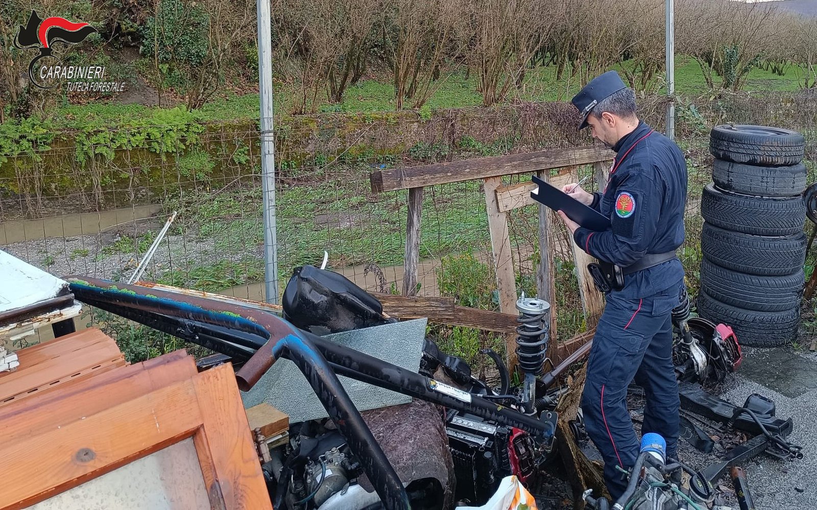 Contrasto all’inquinamento del fiume Sarno, i carabinieri del nucleo forestale di Forino, in sinergia con i colleghi dell’Arma territoriale, hanno effettuato una verifica nel territorio del comune di Montoro: qui hanno accertato che in fondo privato erano depositati rifiuti speciali pericolosi e non pericolosi provenienti da un’officina meccanica. Qui un uomo, in qualità di affittuario di un fondo asfaltato, limitrofo al torrente Solofrana, aveva depositato alla rinfusa, circa 50 metri cubi di rifiuti, costituiti da veicoli fuori uso in avanzato stato di deterioramento, un natante fuori uso, pneumatici fuori uso, circa 100 secchi contenenti vernici oltre a svariati pezzi meccanici provenienti