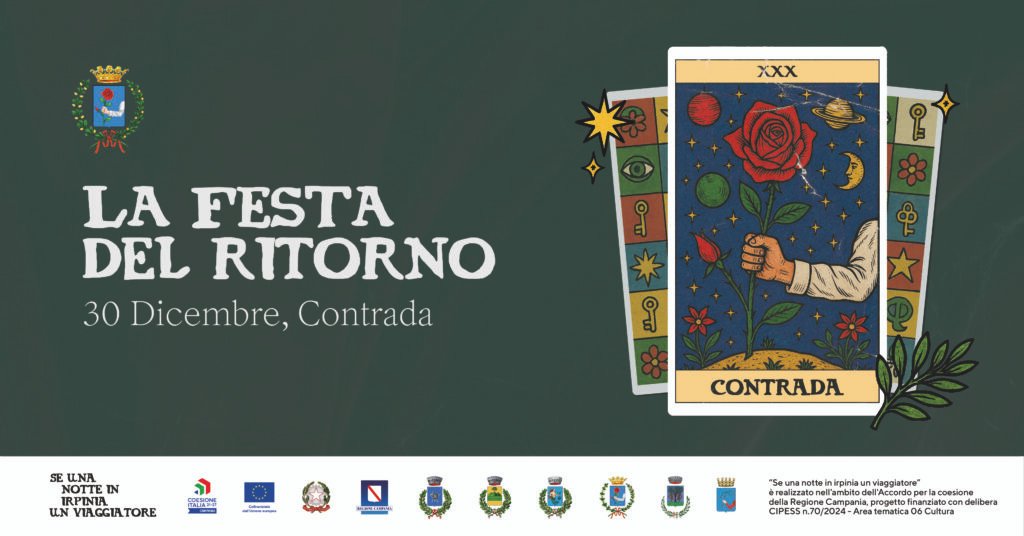Il viaggio di “Se una notte in Irpinia un viaggiatore” si conclude a Contrada con “La Festa del Ritorno”, capitolo finale della seconda edizione del progetto culturale curato da Elementi che trasforma gli spazi pubblici irpini in palcoscenici di nuove narrazioni.