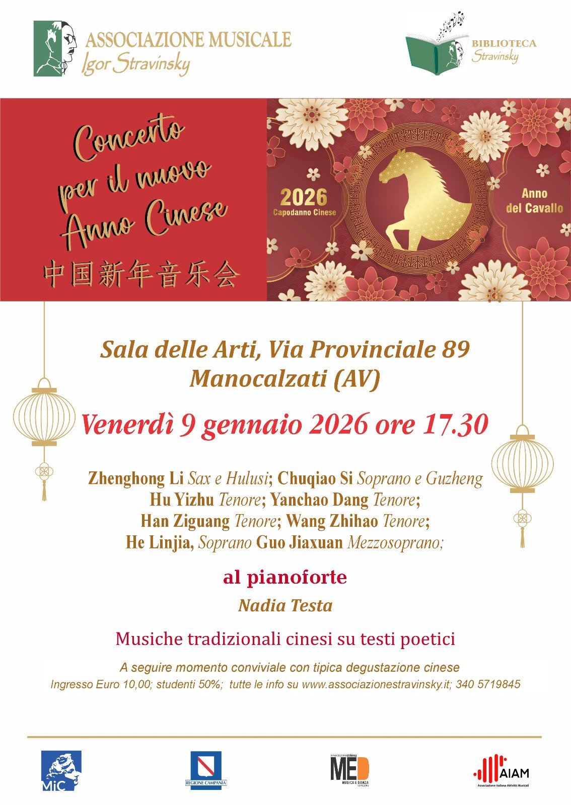 Lo spettacolo musicale racconterà tra musica, canti e poesie “La festa di primavera”, una delle più importanti e maggiormente sentite festività tradizionali cinesi, con il suo “Festival delle Lanterne”, noto anche come Piccolo Capodanno cinese, la festa che chiude il ciclo delle festività del Capodanno cinese.