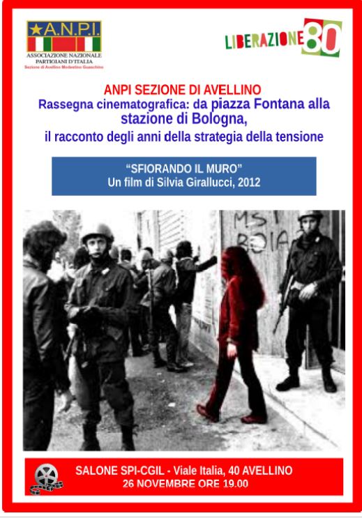Prosegue il 26 novembre, alle ore 19, nel salone dello SPI-CGIL di Avellino la rassegna cinematografica “Da Piazza Fontana alla stazione di Bologna”, promossa dall’Anpi, che sceglie di raccontare attraverso il linguaggio del cinema la strategia della tensione. Si proietta “Sfiorando il muro” di Silvia Girallucci. Nel 1974, Silvia Giralucci ha solo tre anni quando suo padre Graziano, militante dell’Msi,…