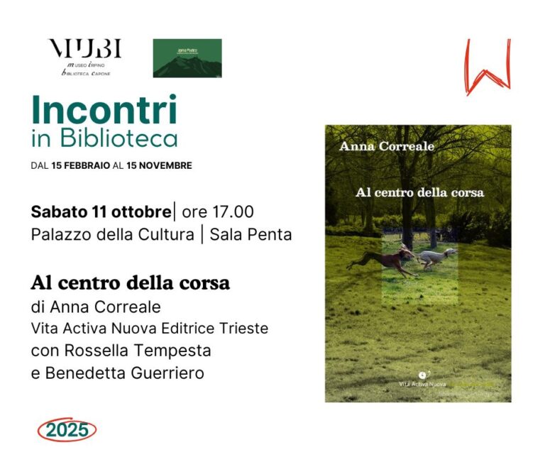 Sarà la Sala Penta del Palazzo della Cultura ad accogliere sabato 11 ottobre, alle 17, la presentazione del nuovo romanzo di Anna Correale “Al centro della corsa”. A dialogare con l’autrice Rossella Tempesta e Benedetta Guerriero. In una Parigi suggestiva la vita di Laura scorre lungo un percorso di risalita, alla ricerca di una ritrovata consapevolezza e di uno spirito…