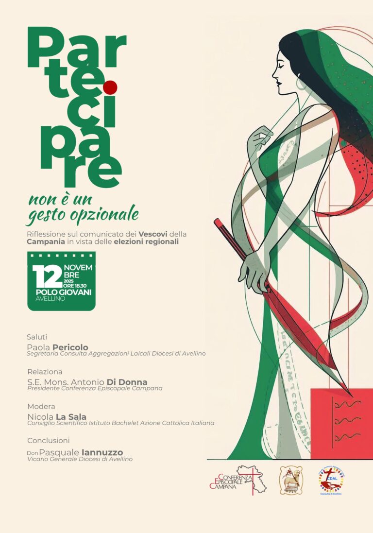 Un momento di confronto e approfondimento sul valore della partecipazione civica e del voto, a partire dal recente messaggio dei Vescovi della Campania. E’ l’appuntamento promosso dalla Consulta delle Aggregazioni Laicali della Diocesi di Avellino, dal titolo “Partecipare non è un gesto opzionale”, in programma mercoledì 12 novembre, alle 18.30, presso il Polo Giovani di Avellino. Dopo i saluti introduttivi…