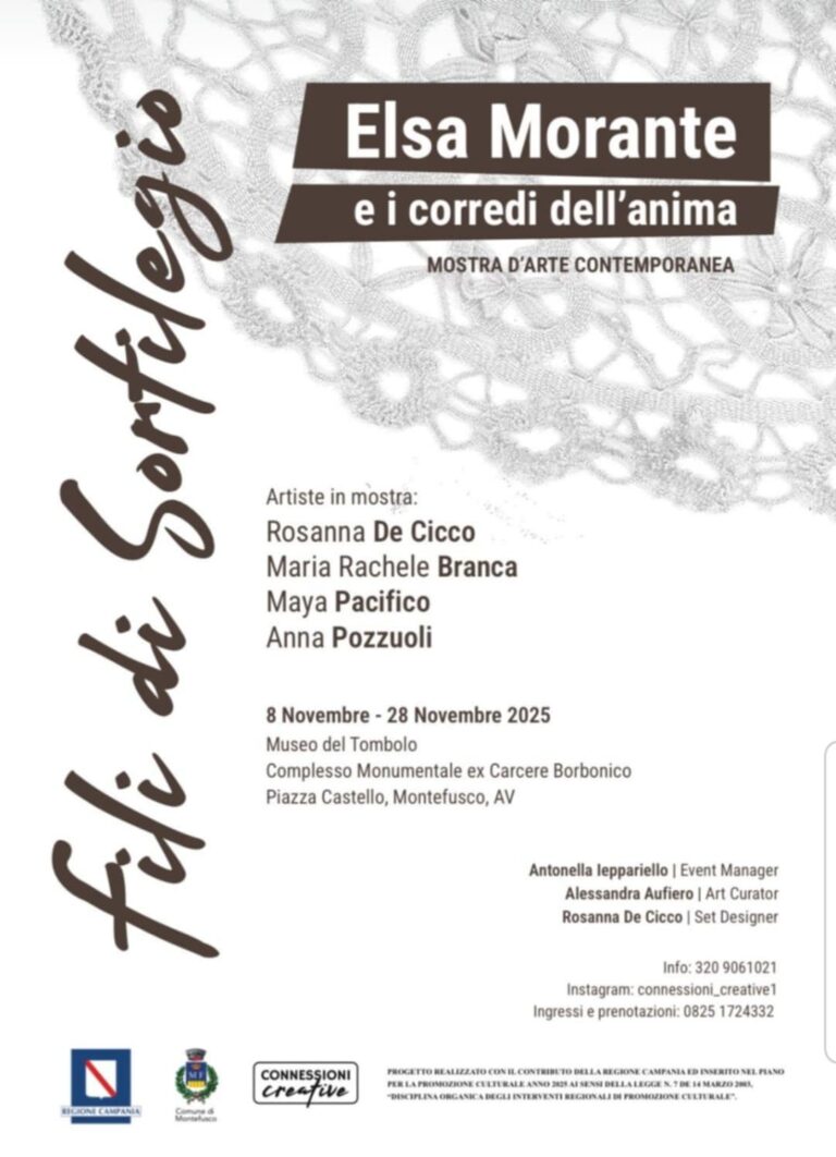 Un omaggio alla scrittrice Elsa Morante che abbraccia arte e letteratura. Sarà la Sala Consiliare del Comune di Montefusco ad accogliere l’ 8 novembre, alle 18, il convegno di apertura della mostra “Fili di sortilegio, Elsa Morante e i corredi dell’anima”, realizzata in occasione del quarantesimo anniversario dalla scomparsa della grande scrittrice. Un omaggio ad una protagonista del panorama culturale…