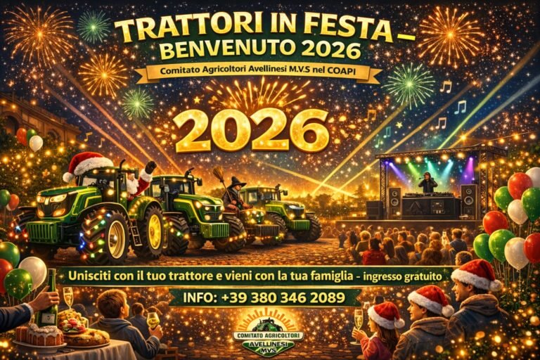 Il 4 gennaio, a partire dalle ore 18.00, piazza Kennedy (ex Piazza Macello) ad Avellino si trasformerà in un grande spazio di festa, luci e musica. Un evento pensato per coinvolgere famiglie, bambini e cittadini di tutte le età, dove la campagna incontra la città in un clima di gioia e condivisione. Il Comitato Agricoltori Avellinesi M.V.S., che aderisce alCoordinamento Agricoltori…