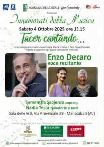 Rosa Bianco Il 4 ottobre 2025 la Sala delle Arti di Manocalzati si trasformerà in un crocevia di voci, memorie e suggestioni. Con il reading d’eccezione “Tacer cantando” prende il via la nuova stagione concertistica “Innamorati della Musica”, a cura…