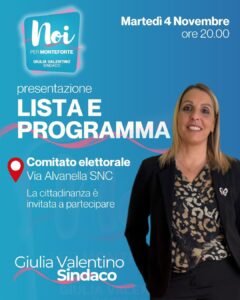 “Istituiremo un Punto Sicurezza in Comune per essere sempre più vicini ai cittadini e garantire una migliore tutela della nostra comunità”. Il capitolo dedicato alla sicurezza rappresenta un tassello importante del programma di Giulia Valentino, candidata sindaco di “Noi per…