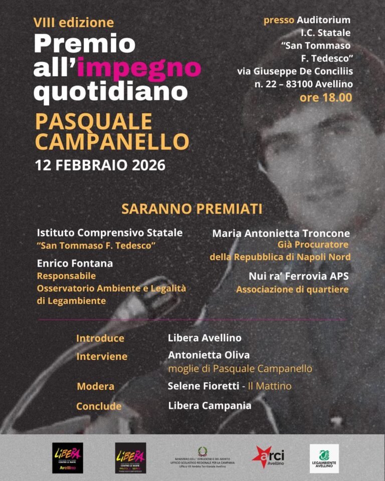Taglia il traguardo della VII edizione il Premio all’impegno quotidiano Pasquale Campanello, in programma giovedì 27 Febbraio alle ore 17.30, al Carcere Borbonico. Il premio è organizzato dal presidio di Pratola Serra insieme a Libera Avellino e sarà l’occasione, ancora…