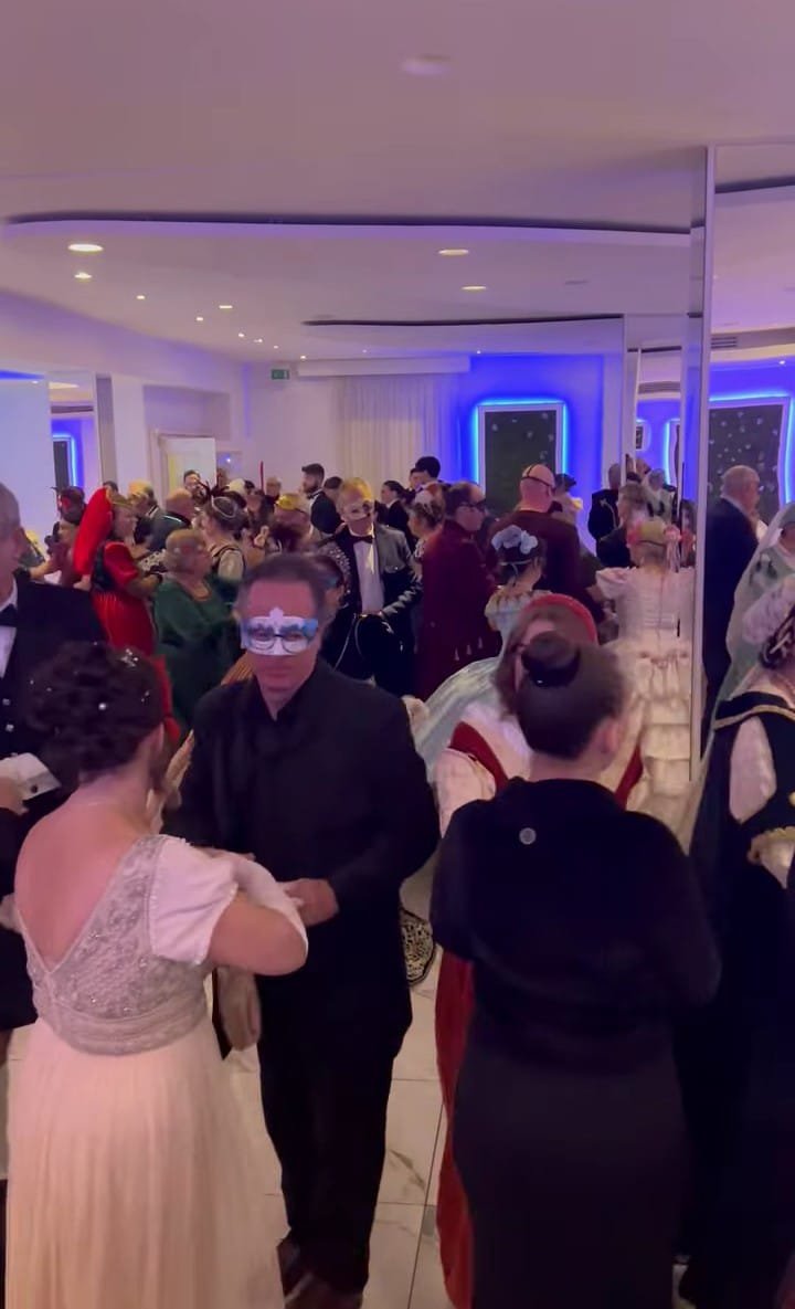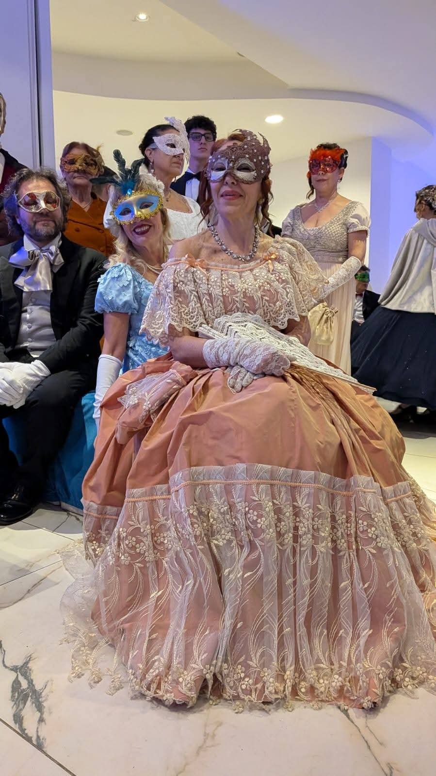 “La Tenuta Ippocrate ci ha accolti con eleganza e calore. A conclusione della serata si è svolta la premiazione della maschera più creativa: ha vinto un ussaro russo, con colbacco ornato dallo stemma tradizionale del teschio e delle ossa. Il finale è stato travolgente: la docente Anna Paola Napoli ha evocato l’Irpinia, i contadini, il brigantaggio e i luoghi storici dell’Avellinese, fino al carcere borbonico. Subito dopo abbiamo danzato tutti insieme la Carmagnola, sulle note dell’inno dei sanfedisti di Peppe Barra.”