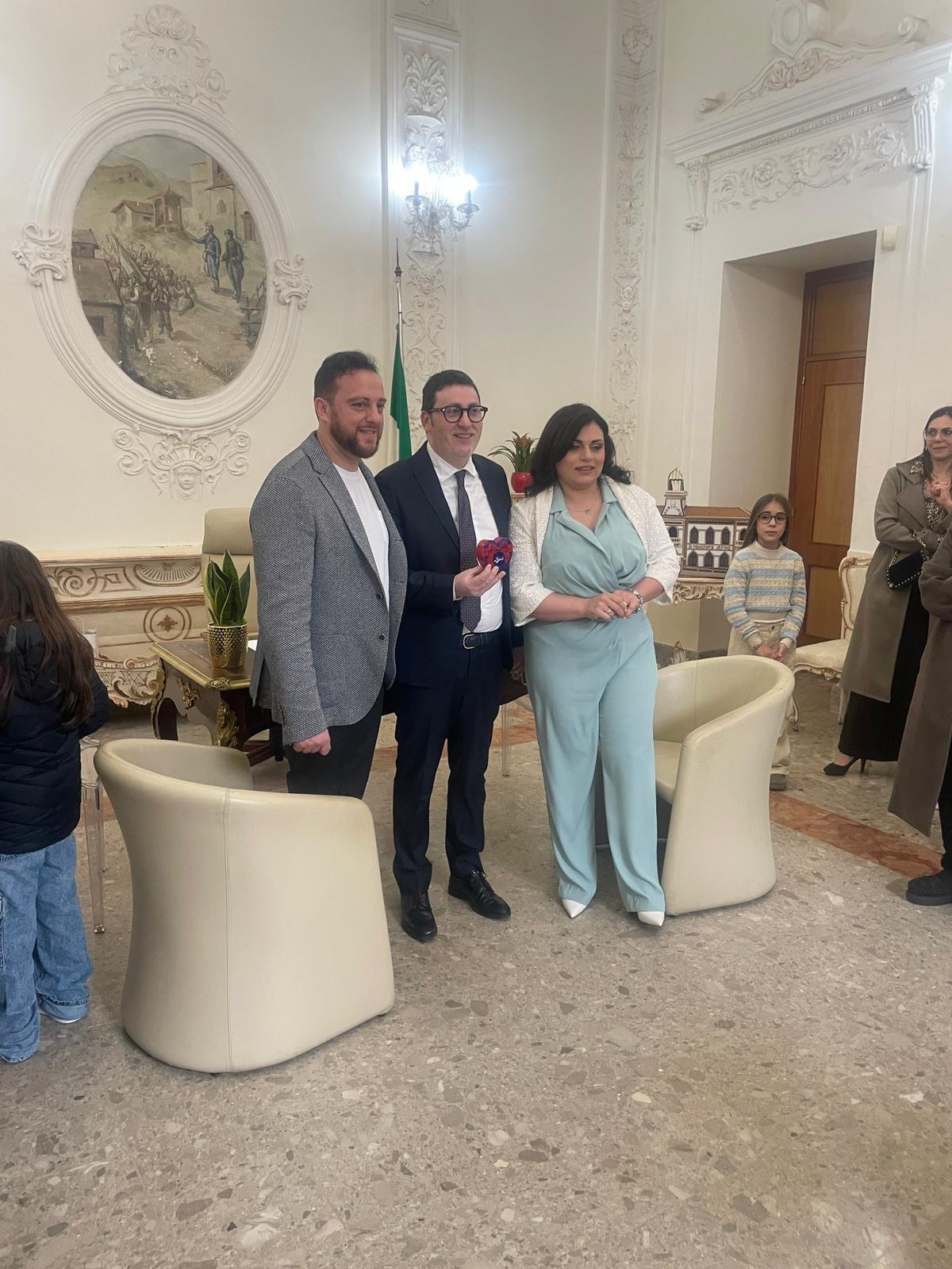Monteforte, dunque, paese dell’amore. Proprio per sugellare la giornata di San Valentino, questa mattina in Municipio il sindaco ha celebrato un matrimonio ed una promessa di matrimonio.