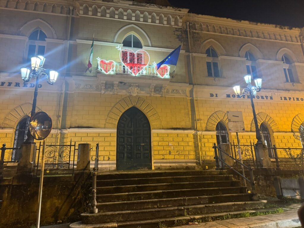 Tre cuori rossi affianco alle bandiere dell’Italia e dell’Europa, un messaggio di pace, amore e speranza che arriva da Monteforte Irpino e che travalica la giornata di San Valentino. «Noi vogliamo essere il paese dell’amore e della pace 365 giorni all’anno – sottolinea il sindaco Fabio Siricio -. Lanciamo oggi questo messaggio ma saremo sempre costruttori di pace e di solidarietà tra i cittadini con iniziative e segnali concreti che stiamo ideando e che, a breve, realizzeremo. I cuori sono anche un omaggio dell’amore verso il paese per chi si è candidato ad amministrare la cosa pubblica con l’obiettivo che un domani ci sia un unico cuore grande pulsante che parta da Monteforte per unire tutta l’Irpinia e non solo».