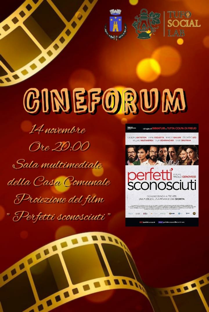 Tufo – Venerdì 14 Novembre 2025, alle ore 20, presso la Sala Multimediale della Casa Comunale di Tufo, debutta il “Cineforum”, nuovo appuntamento targato “Tufo Social Lab”, l’associazione nata quest’anno nel borgo del Greco di Tufo, guidata dal presidente Giuseppe Iennaco, alla testa di un affiatato gruppo di giovani tufesi. Il primo film ad andare in scena sarà “Perfetti sconosciuti”, capolavoro di Paolo Genovese uscito nel 2016 ed entrato di diritto, nel 2019, nel Guinness dei primati come film con più remake in assoluto nella storia del cinema.