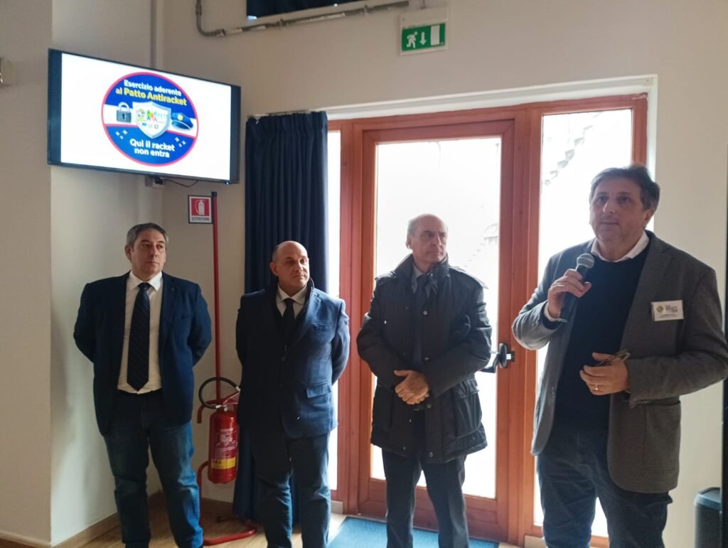 Durante l’appuntamento di oggi c’è stata anche la sottoscrizione del Patto Antiracket da parte delle associazioni di categoria, Confesercenti – presente Giovanni Marinelli -, Confcommercio – presente Oreste La Stella – , FenImprese – Domenico Carrino – con l’invito agli imprenditori ad aderire visibilmente alla rete della legalità, esponendo anche l’adesivo simbolico: “Qui il racket non entra”.
