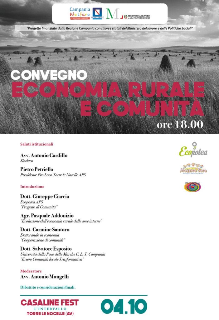 Tante e autorevoli le voci al tavolo. Ad aprire il dibattito Antonio Cardillo, sindaco di Torre Le Nocelle, e Pietro Petriello, presidentedella Pro Loco. Dopo i saluti istituzionali, la parola passerà a Giuseppe Ciarcia, presidente di Ecopotea, che esporrà il “Progetto di comunità” portato avanti dall’associazione. Spazio, poi, all’agronomo Pasquale Addonizio, per l’intervento “Evoluzione dell’economia rurale delle aree interne”. Dal dottorando in Economia Carmine Santoro, invece, il punto sulla “Cooperazione di comunità”. E ancora, “Essere comunità locale